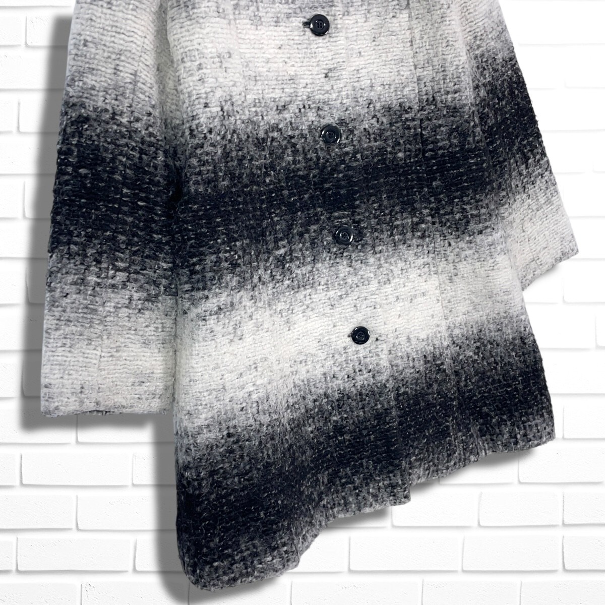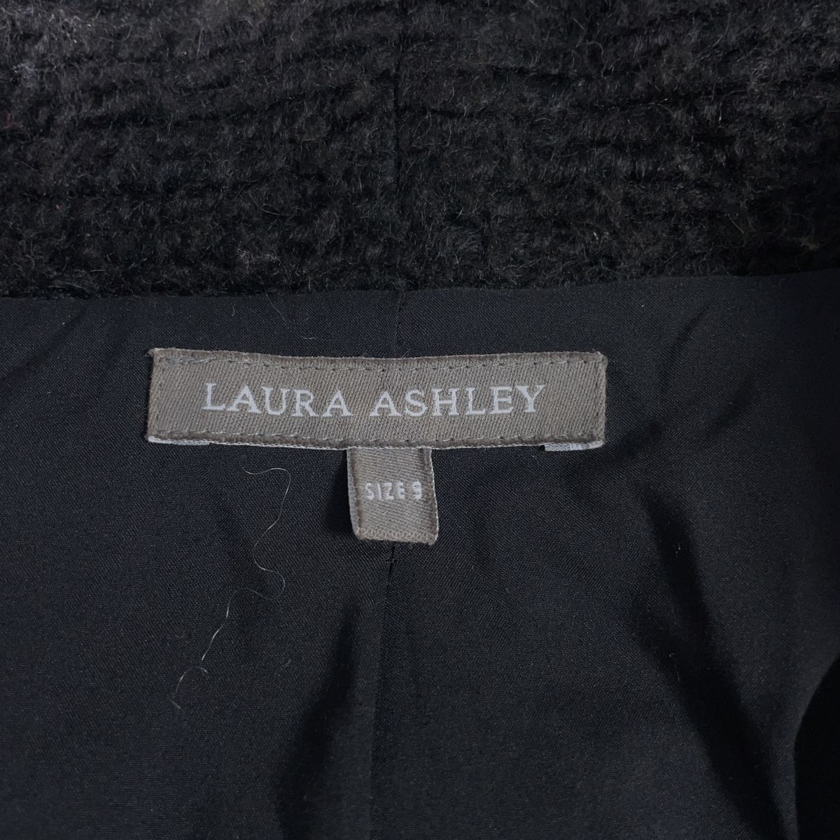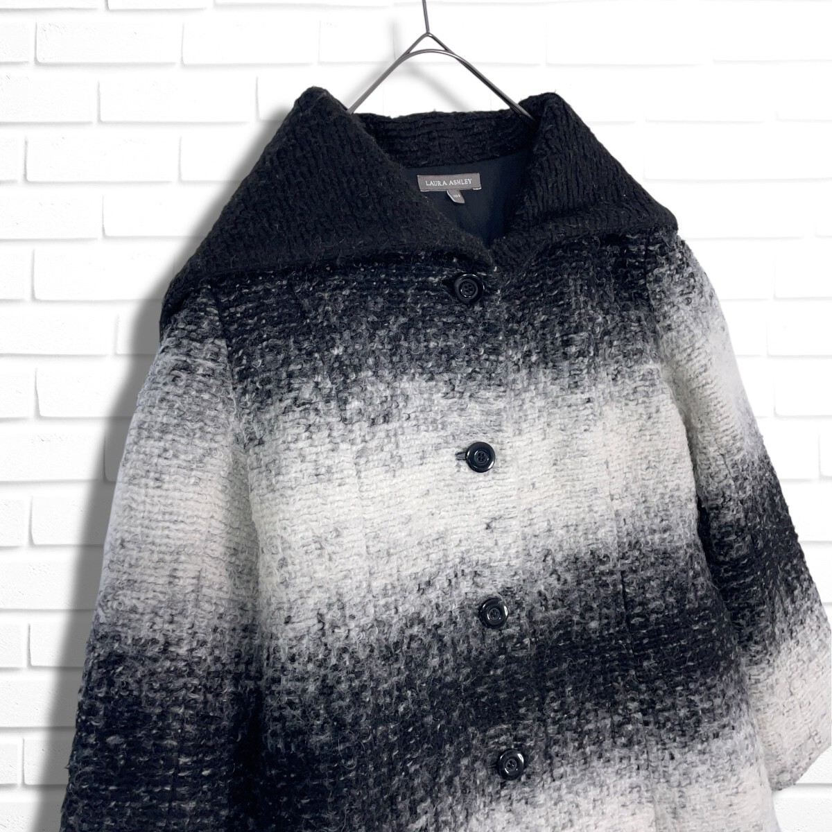◆良品◆ LAURA ASHLEY ローラアシュレイ ウール ニット フーディー コート 白 × 黒 ホワイト ブラック レディース 9 送料無料 0975J◇
