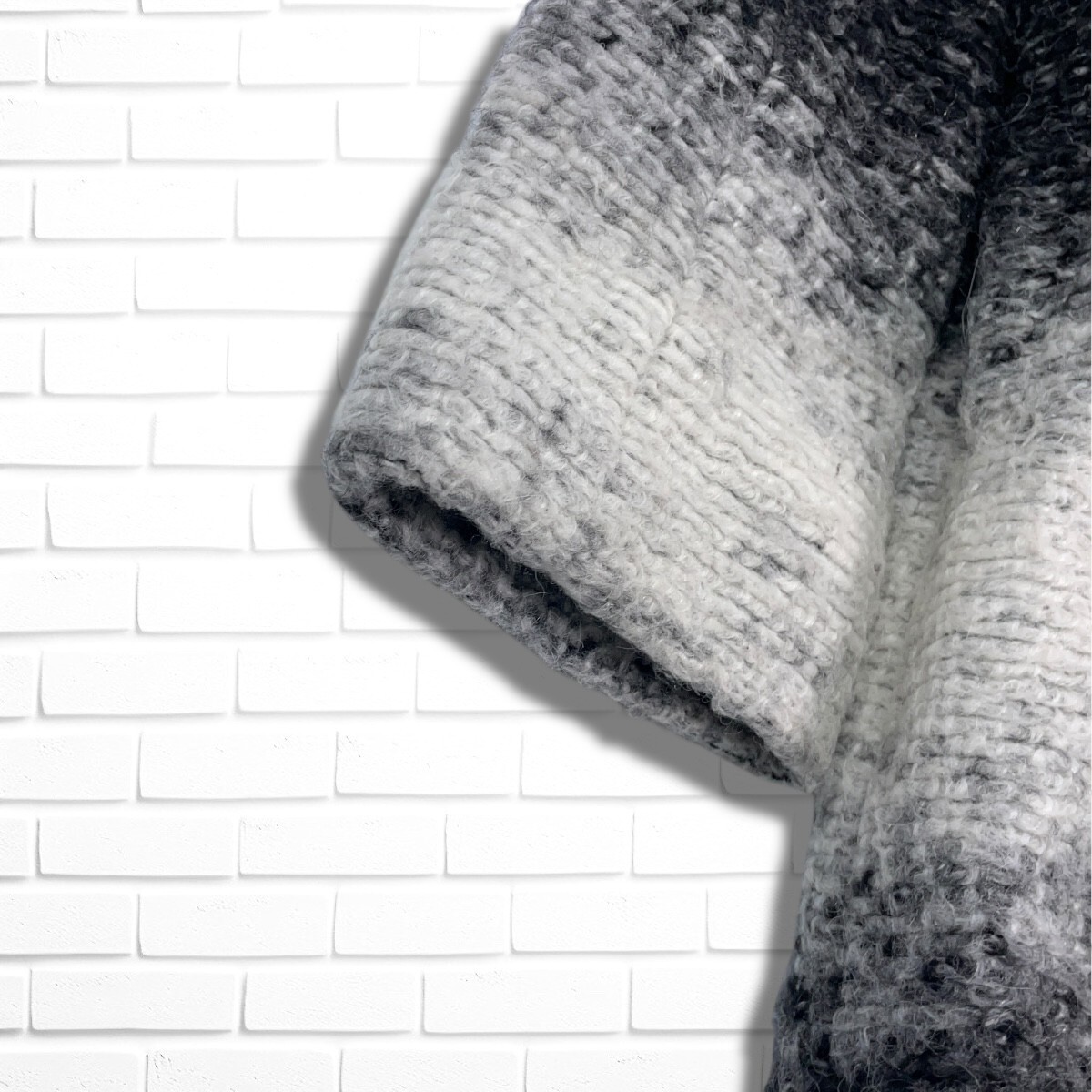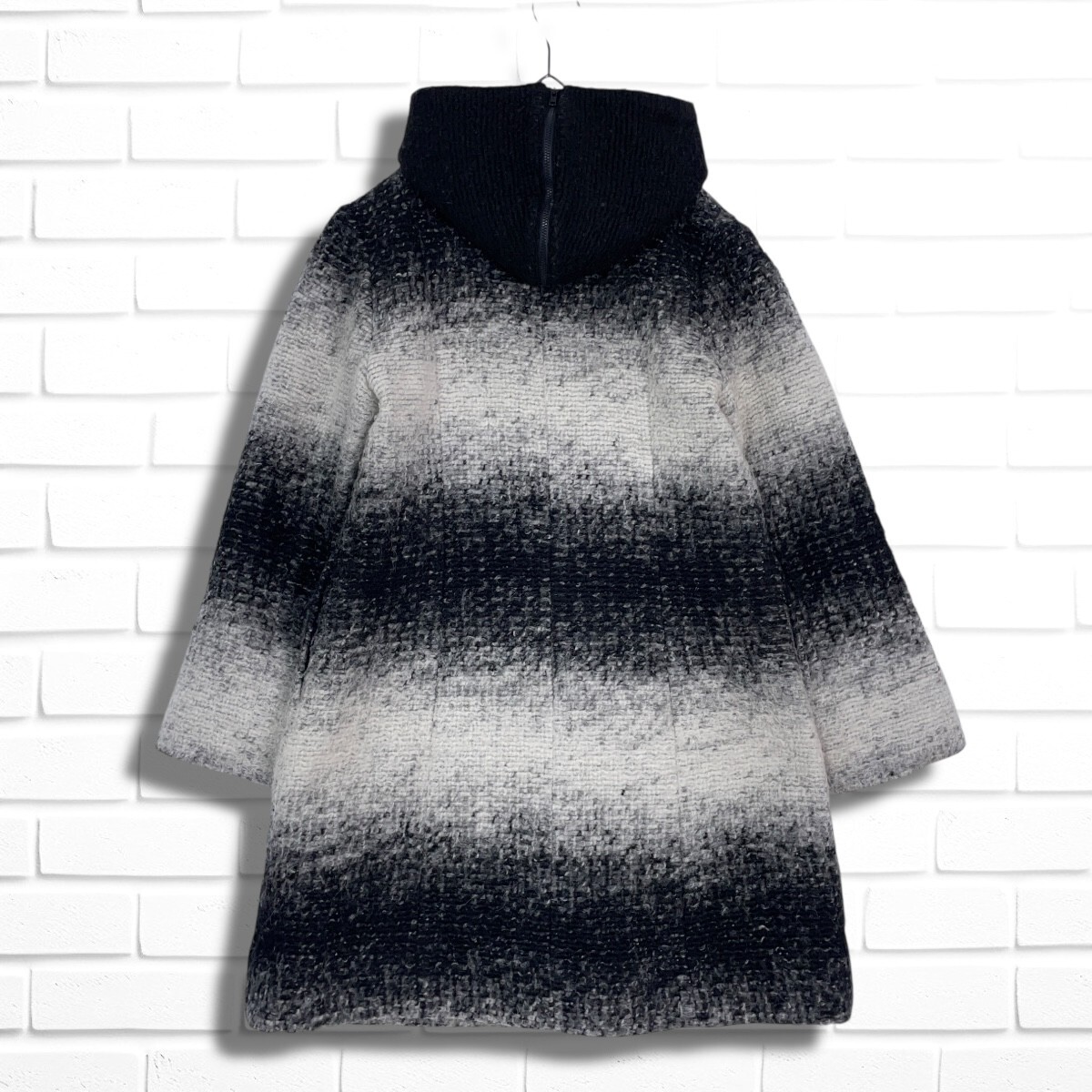 ◆良品◆ LAURA ASHLEY ローラアシュレイ ウール ニット フーディー コート 白 × 黒 ホワイト ブラック レディース 9 ◆送料無料◆ 0975J◇