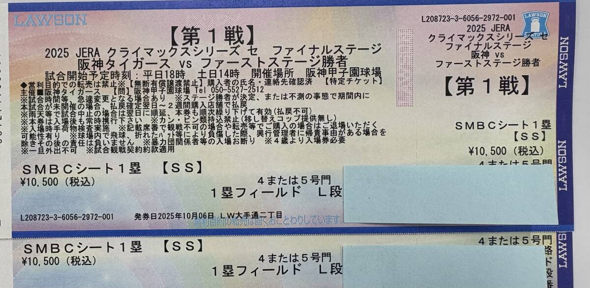 雨天時中止またはノーゲームの場合、翌日に順延されます。チケットも順次繰り下げて有効となりますので払戻は致しませんのでご理解のうえご入札ください。