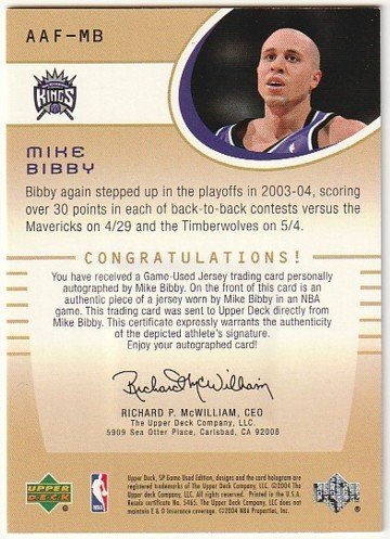 2004-05 SP GAME USED AUTHENTIC FABRICS Mike Bibby Jersey Auto #/100 SACRAMENTO KINGS