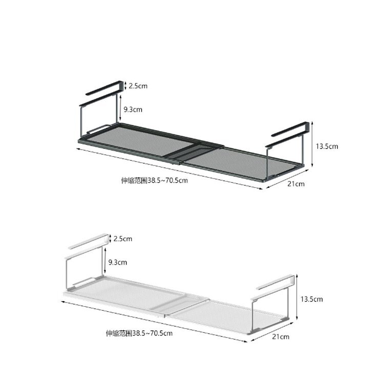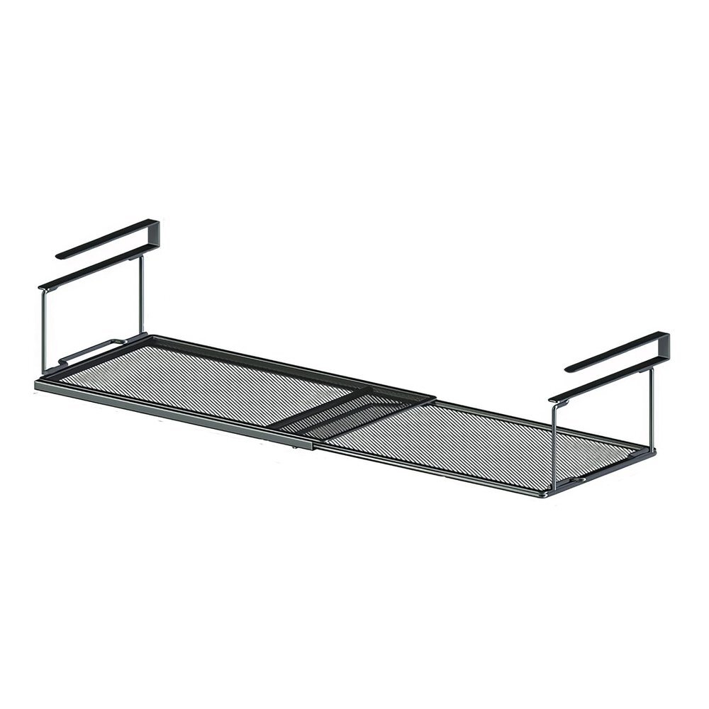 ◆浮かせる伸縮ラック 靴ラック 吊り戸棚収納 横幅伸縮式 耐荷重最大8kg ワイド スリム 省スペース 棚下収納 吊り下げラック 簡単設置 キッチンツール 大容量収納【ブラック】DBS397