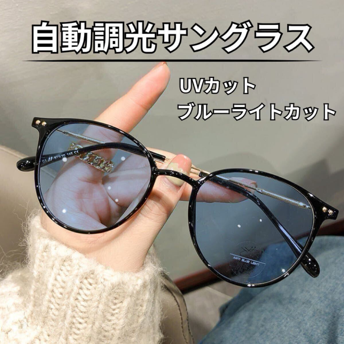調光サングラス レディース メンズ 韓国風 紫外線カット UV対策 サングラス 黒レンズ モカブラウン ボストン型 メガネ 紫外線サングラス 度なし 軽量メガネ ファッションサングラス おしゃれサングラス ユニセックス 男女兼用