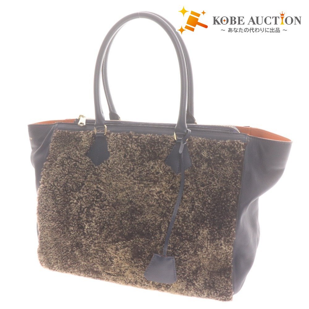 ■ ADMJ エーディーエムジェイ トートバッグ A350267 鞄 ボア ファスナー ロゴ レディース ネイビー