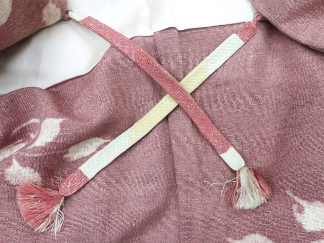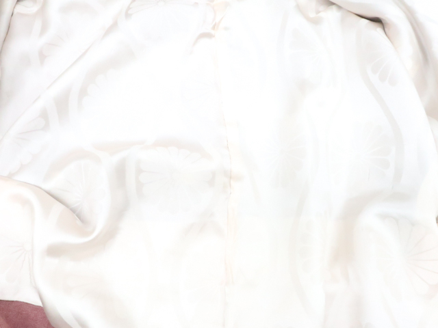 リサイクル商品のため、全体ヤケがございます。 両袖口汚れがございます。 羽裏にスレがございます。 紐にしみがございますが着用可能なお品です。 地色は灰紫です。 1枚目の画像が近いお色かと思われます。 素材は正絹です。 |
