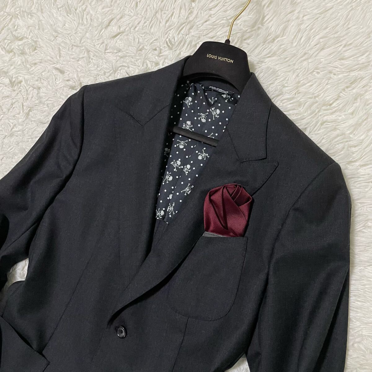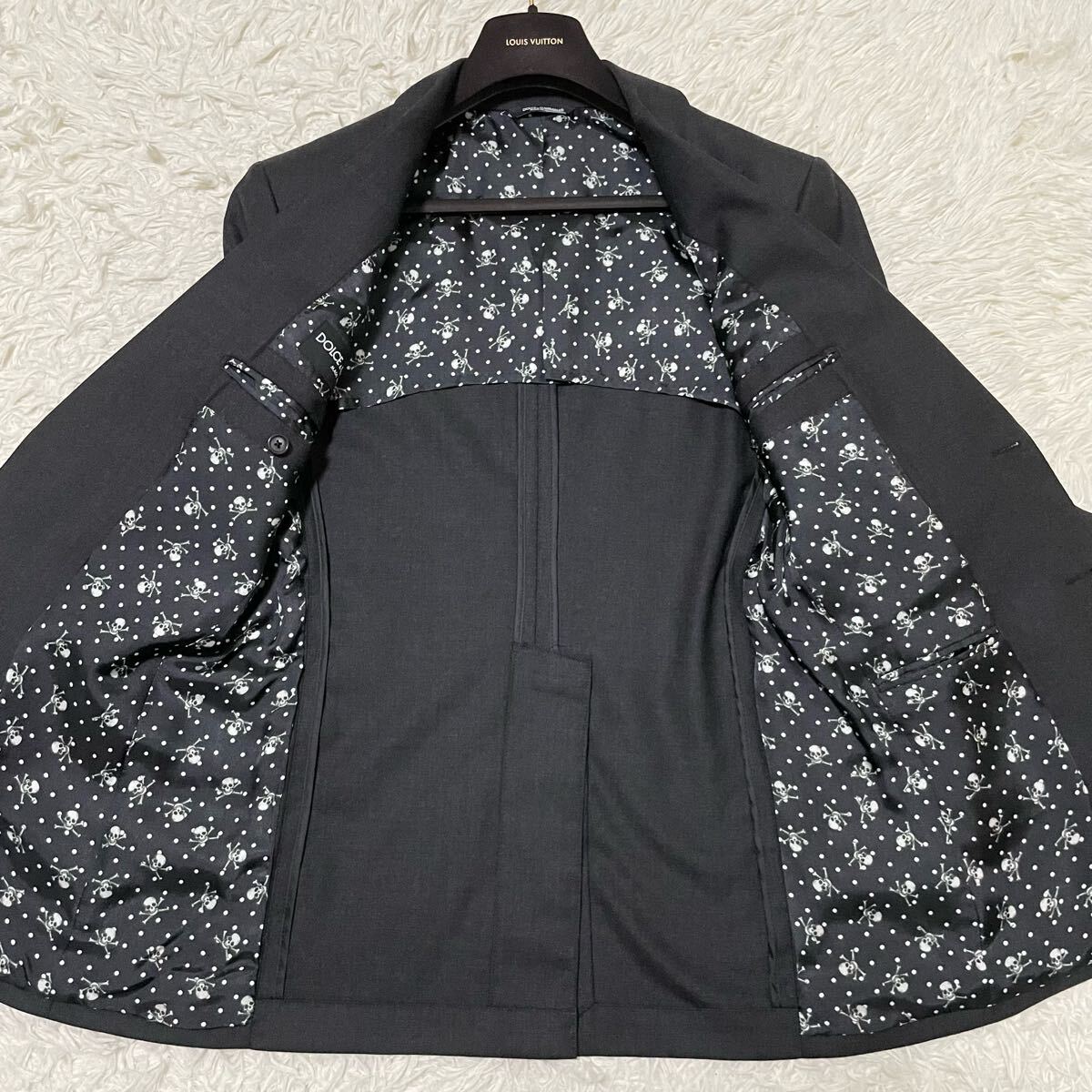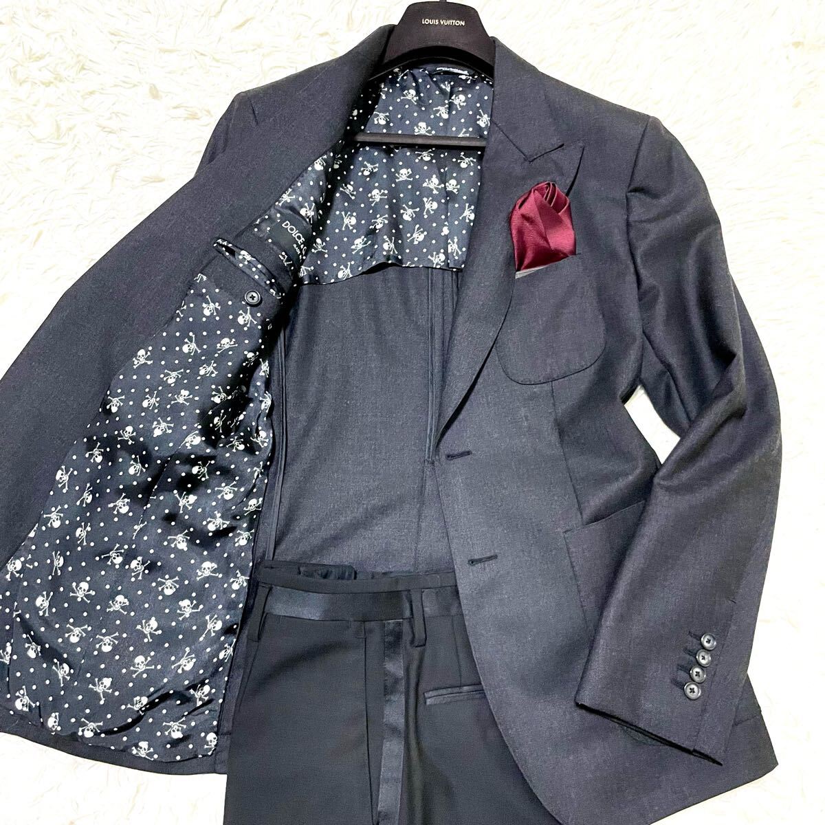 極美品 ドルチェ&ガッバーナ【全面スカルで魅せる】セットアップ タキシードスーツ アンコン L相当 総柄 サイドライン DOLCE&GABBANA