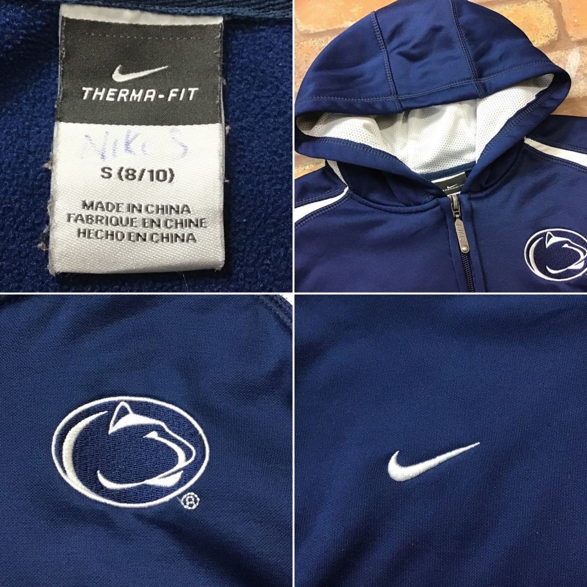 合計落札金額¥8,000円以上で、、、 送料無料!! ※こちらからの[合計支払い金額通知]をご確認の上、お支払い下さい♪ -------------------------- 【 ナイキ×ペンシルベニア大 】 THERMA-FIT メッシュ切替 ジップアップ スウェットパーカー ● USA輸入・正規品 ● ● 海外サイズ規格 ● ◆ コンディション ◆ ダメージはなく、コンディション良好です◎ ----------------------- ◆ サイズ ◆ ユース S 130 ※海外規格の為、下記実寸のご確認をお願いいたします。 ◆ 実寸 ◆ 肩幅:38cm 身幅:43cm(両脇下間を計測) 着丈:51cm(背面襟元~裾を計測) 袖丈:48cm 素人採寸の為、多少の誤差はお許しください。。 ------------------------ ◆ 素材表記 ◆ ポリエステル 100% -------------------------- | |||||
