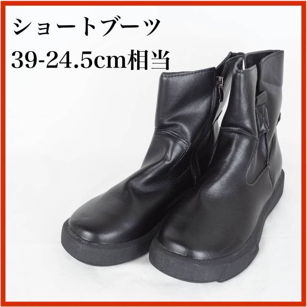 ★100スタ★EB9091★美品★レディースショートブーツ*39-24.5cm相当*黒