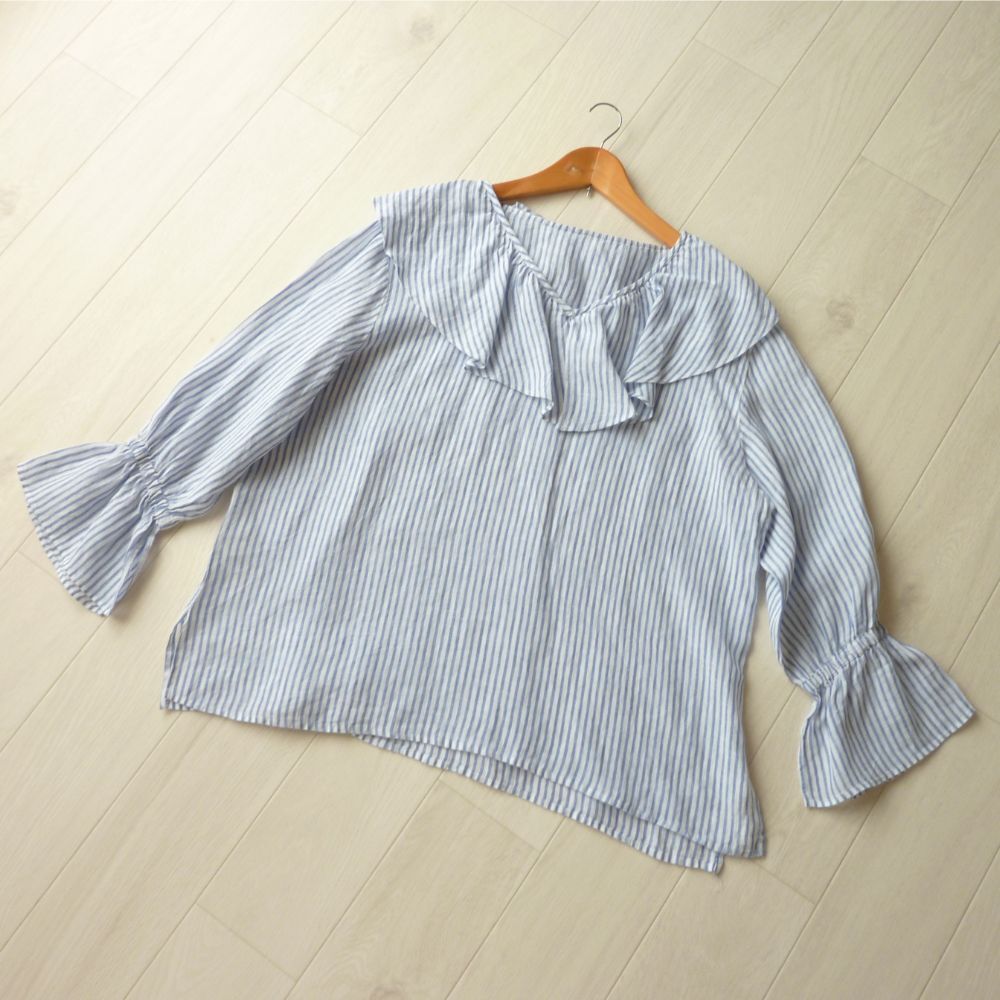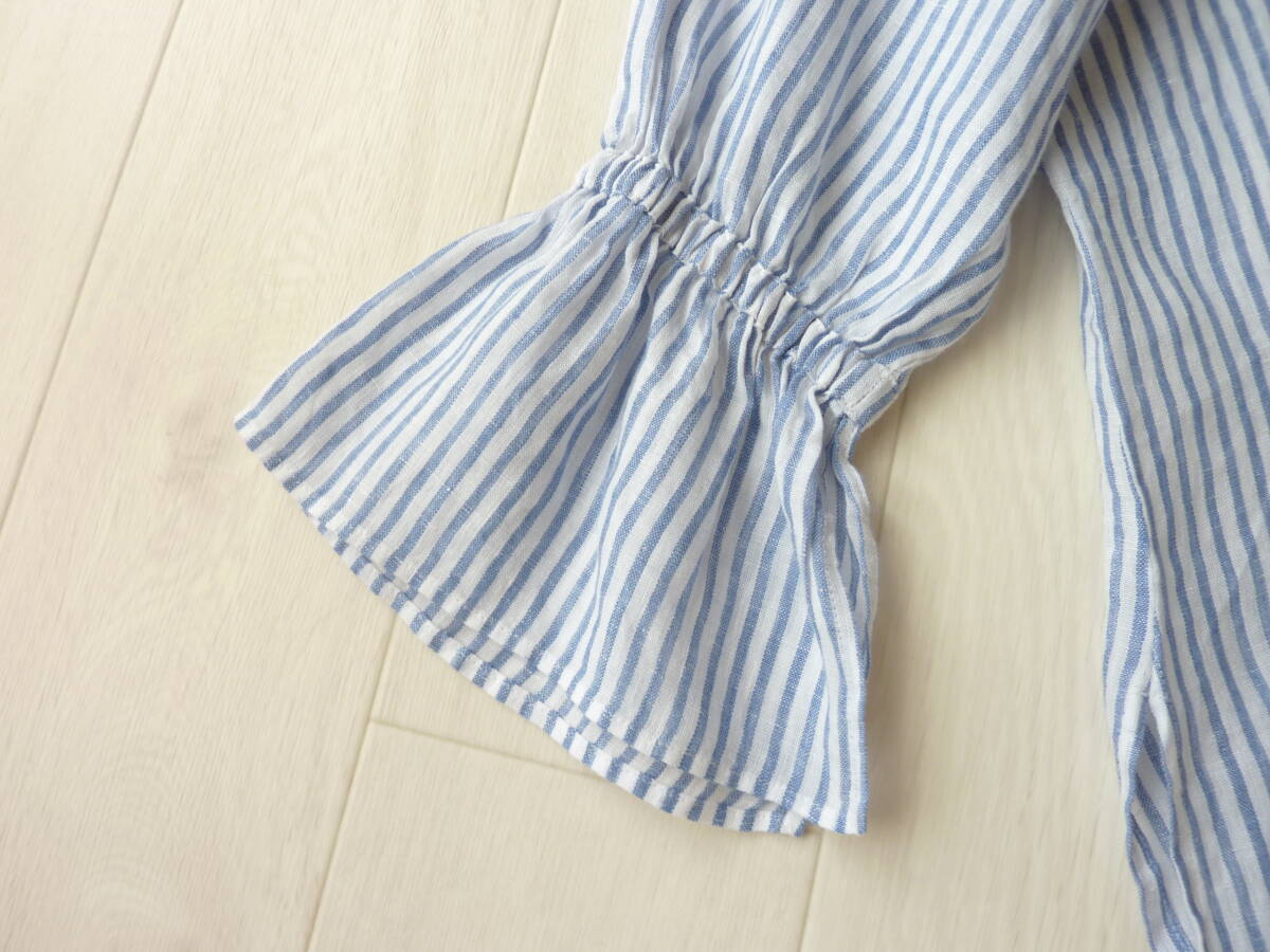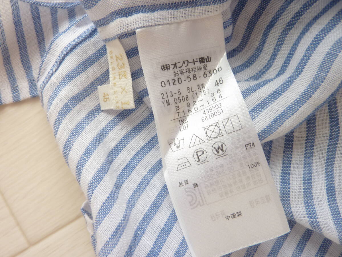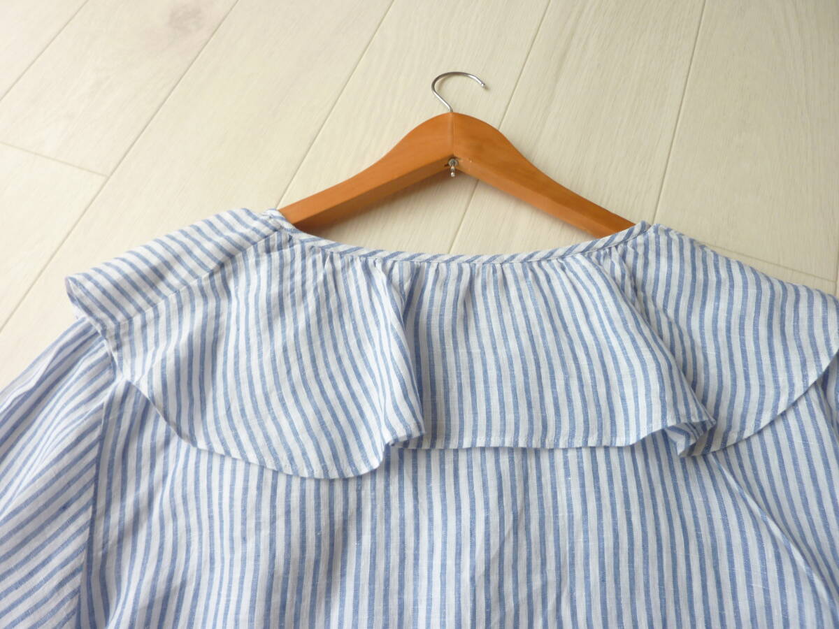 大きいサイズ46 23区×リベコ 麻100% ストライプ 長袖 プルオーバーシャツ ブラウス リネン100% 23区 LIBECO 2L 3L 4L