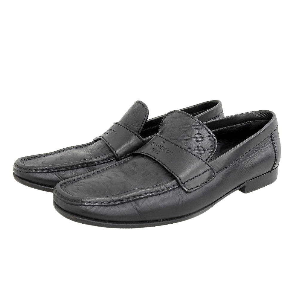商品名 ルイヴィトン ダミエアンフィニ エンボスロゴ スクエアトゥ フラットローファー シューズ メンズ ブラック 6 1/2 FA0086シューズ