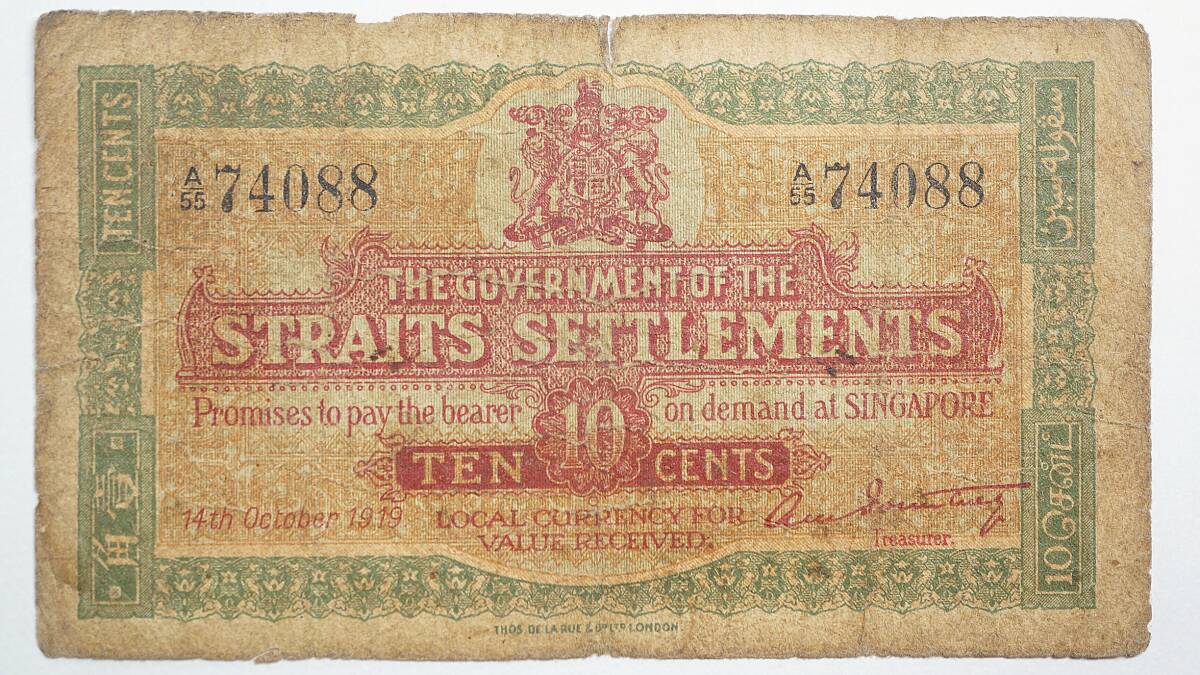 1919年 イギリス領 海峡植民地 10セント紙幣 Straits Settlements 10CENT