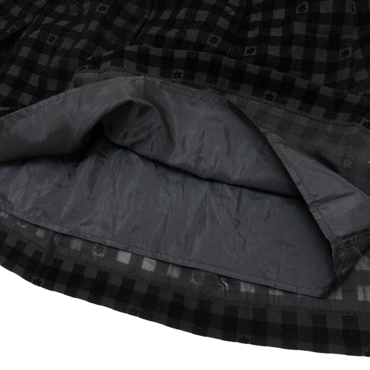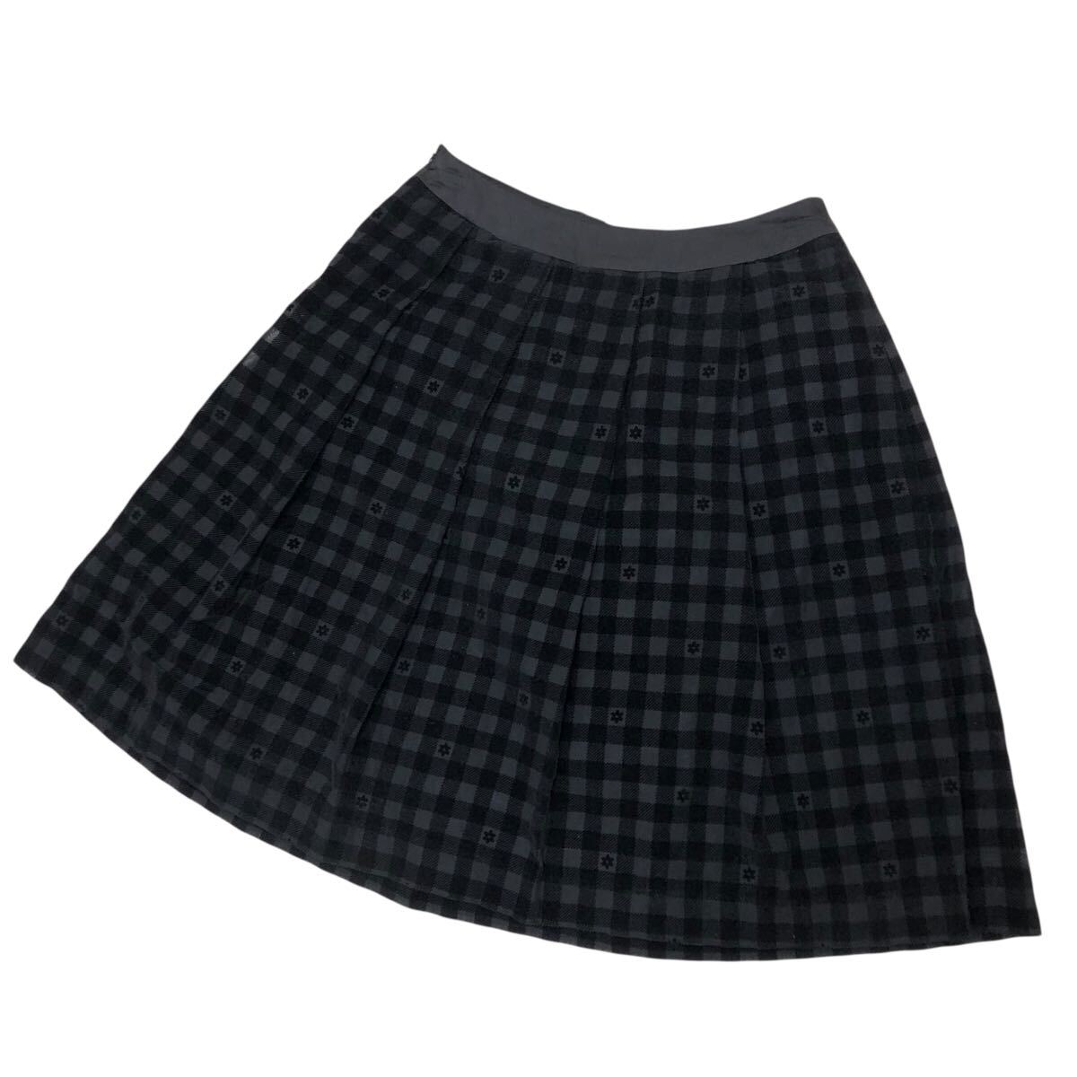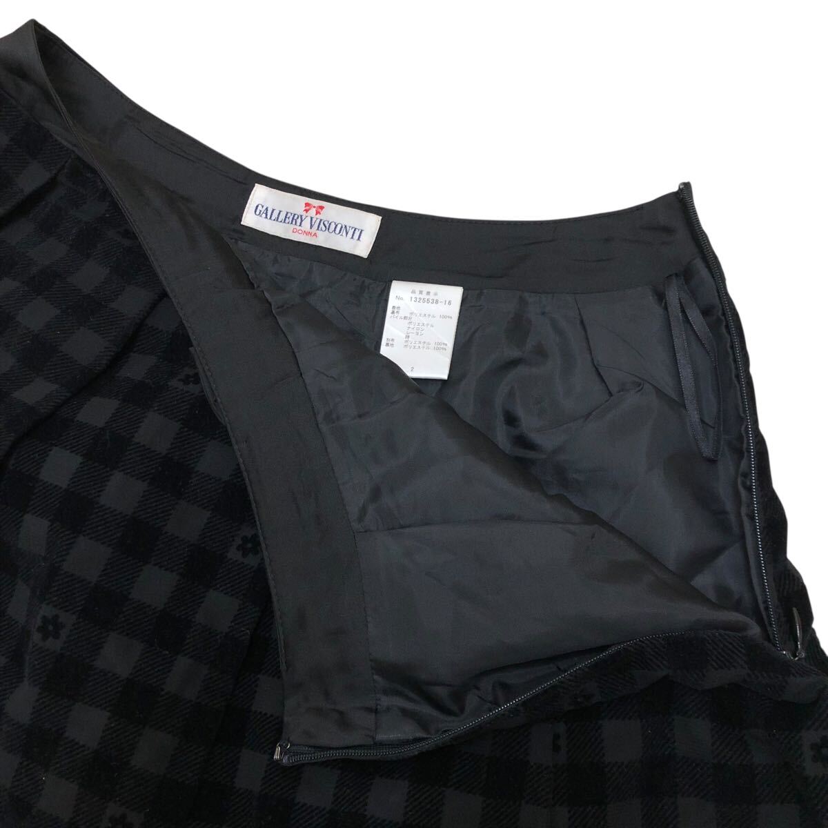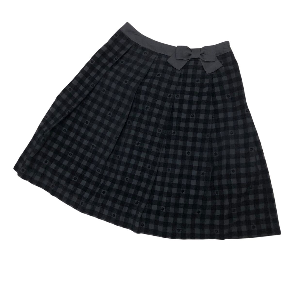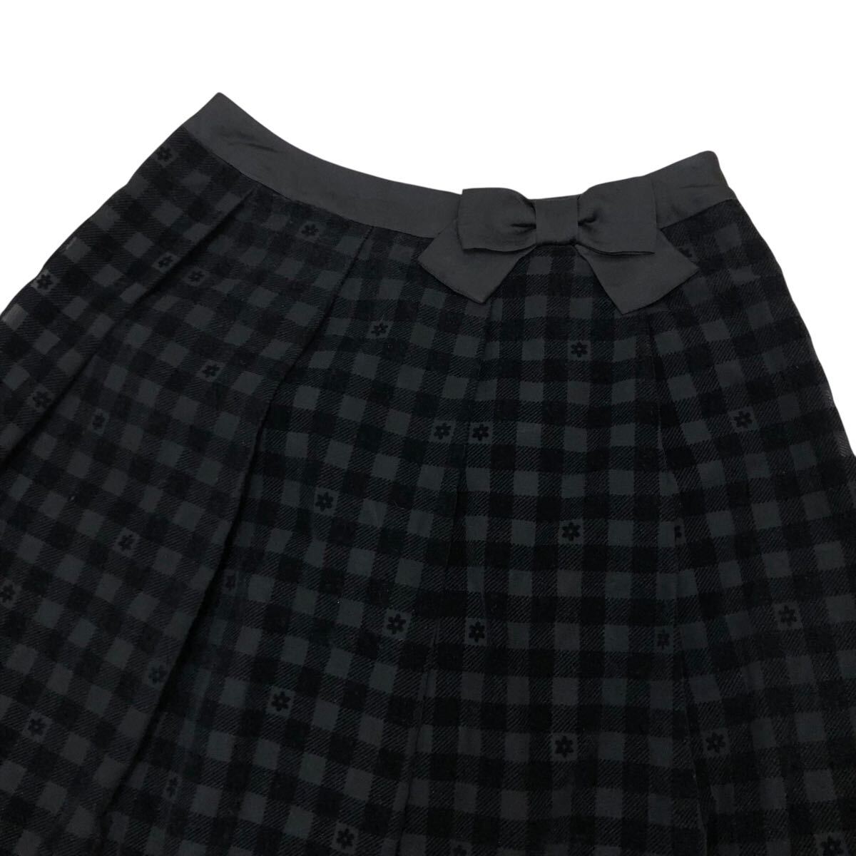 10NK006-76 GALLERY VISCONTI ギャラリービスコンティ フレア 膝丈 リボン ミニ スカート チェック 花柄 黒 レディース 女性用 2