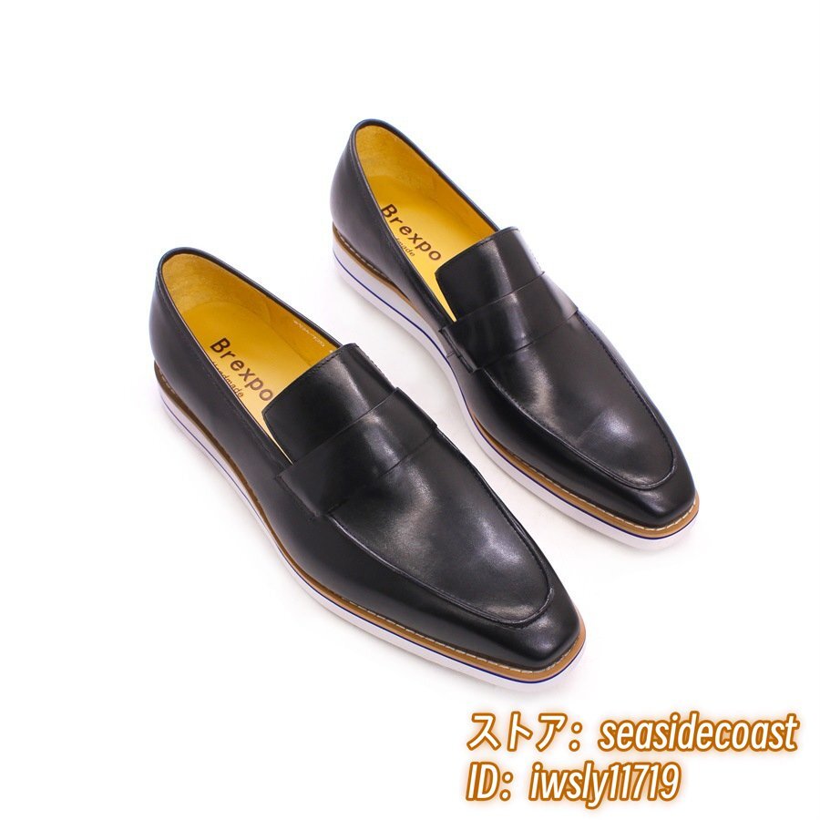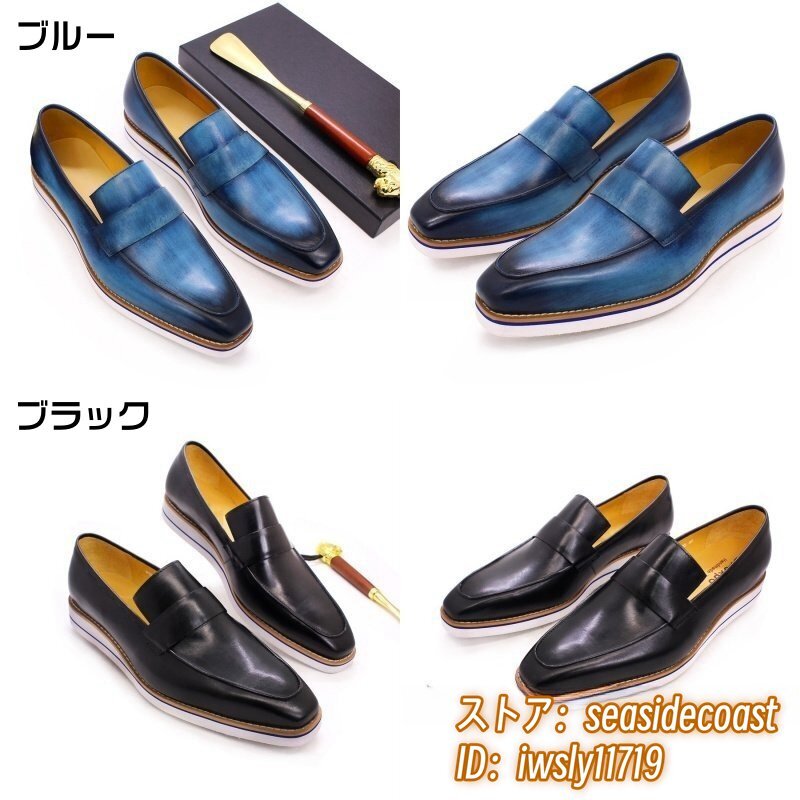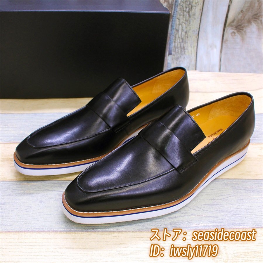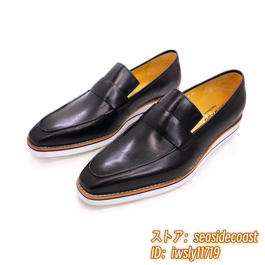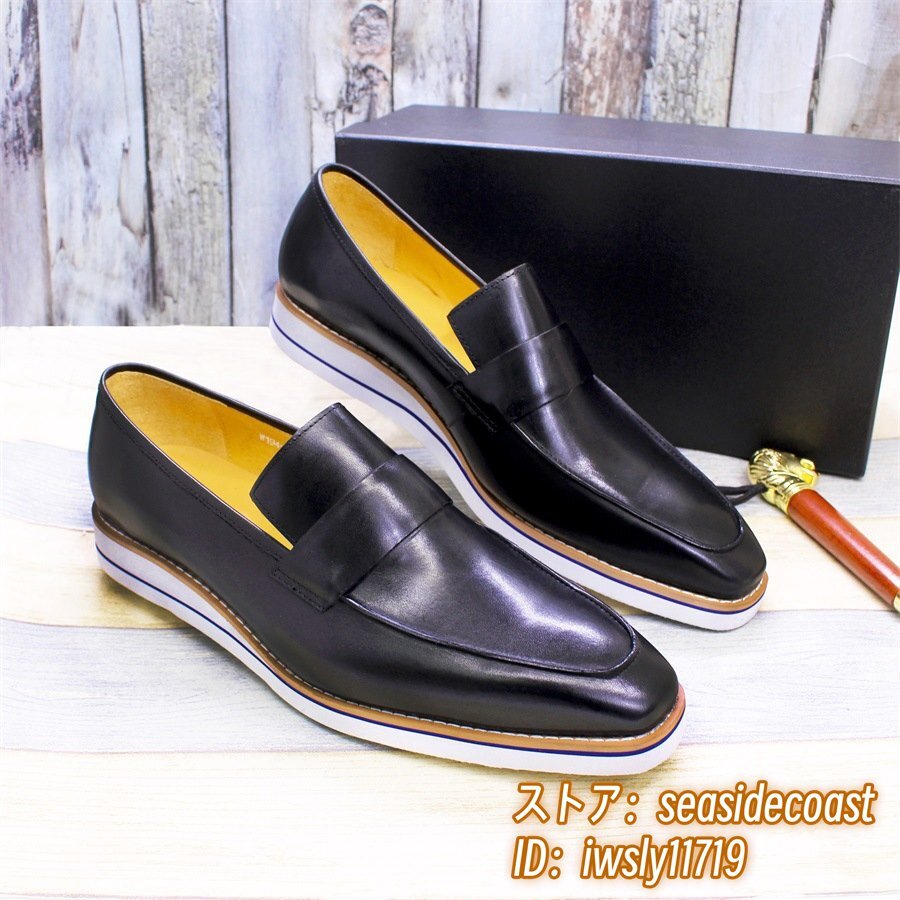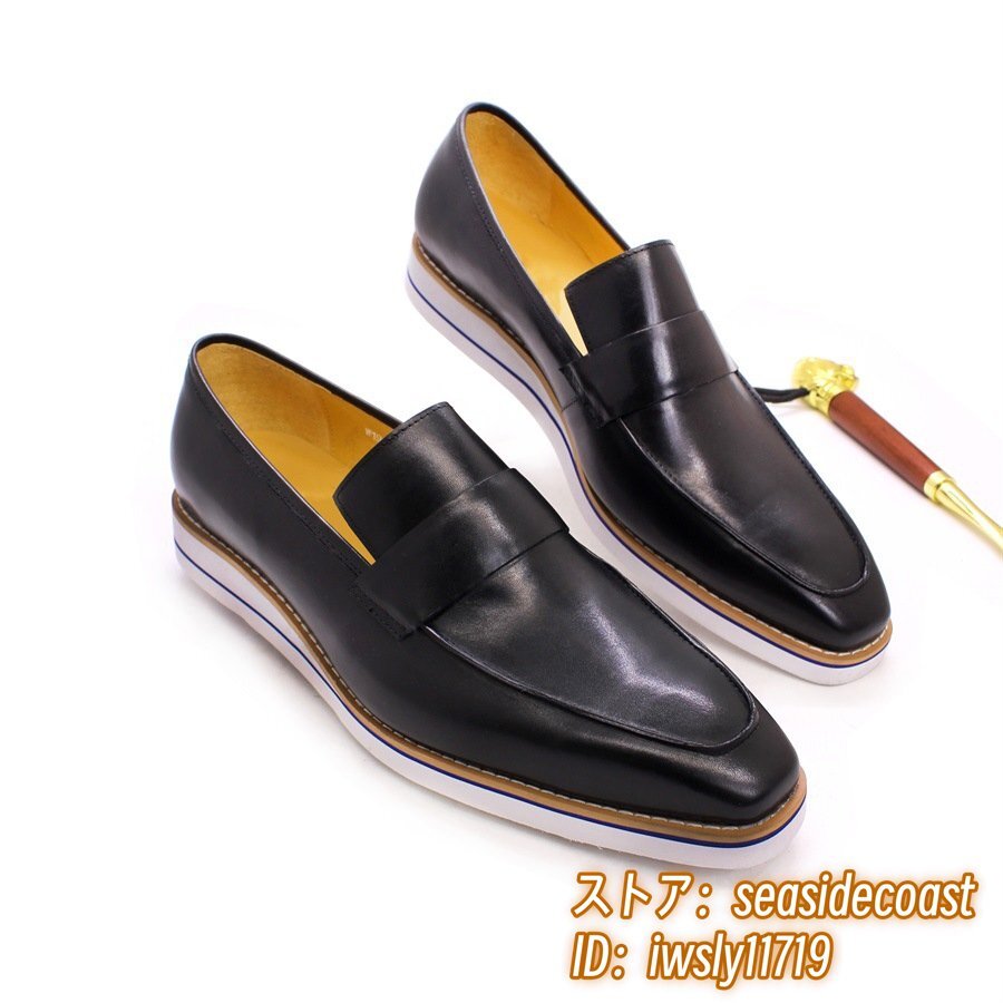 最高級*メンズ ローファー スリッポン 職人手作り 本革 レザーシューズ ビジネスシューズ 牛革 革靴 紳士靴 ドライビング ブラック 25.0cm