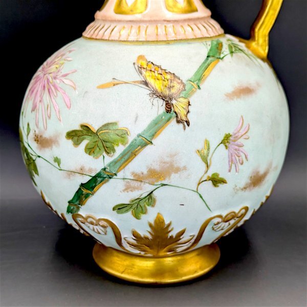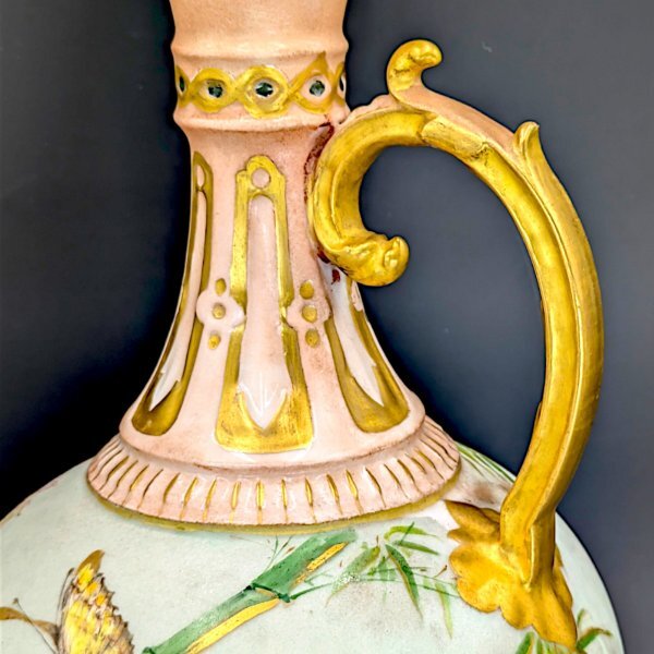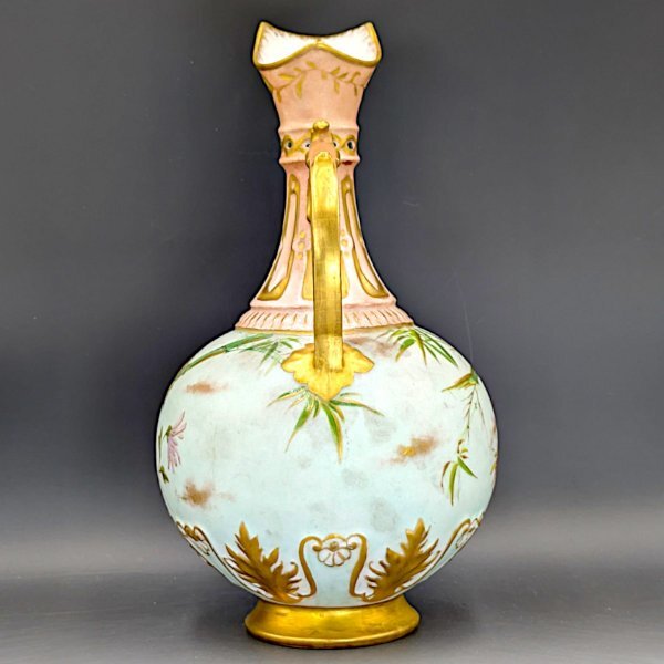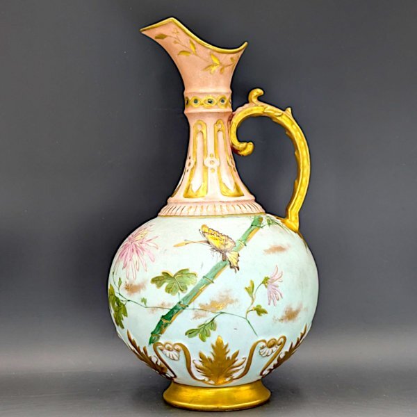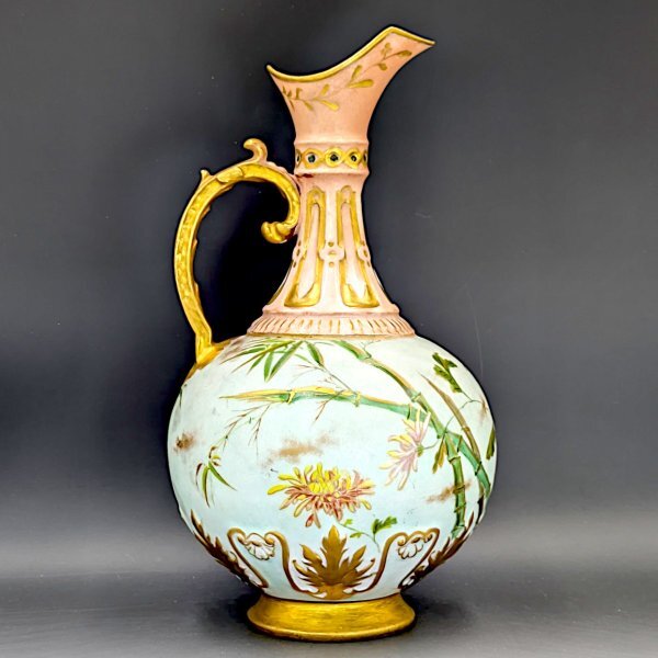 日本製の美しいアンティーク水差しです。淡いミントグリーンの地に、