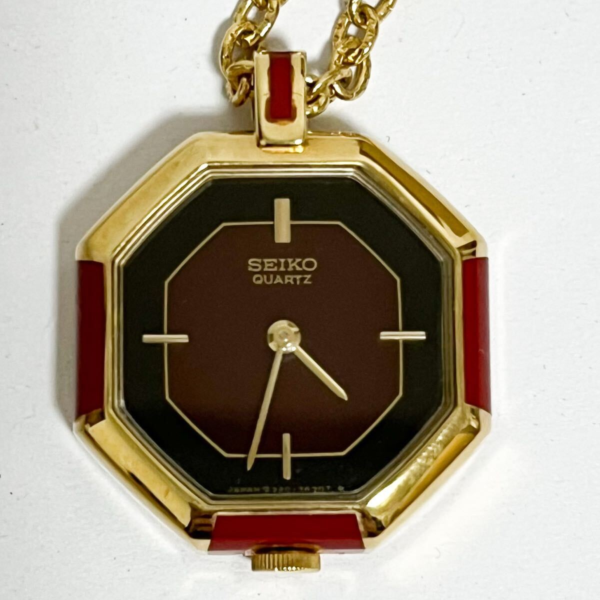 K32★ 箱付き SEIKO 2320-6820 100619 セイコー ペンダントウォッチ ネックレス クォーツ 2針 レッド ゴールド レディース