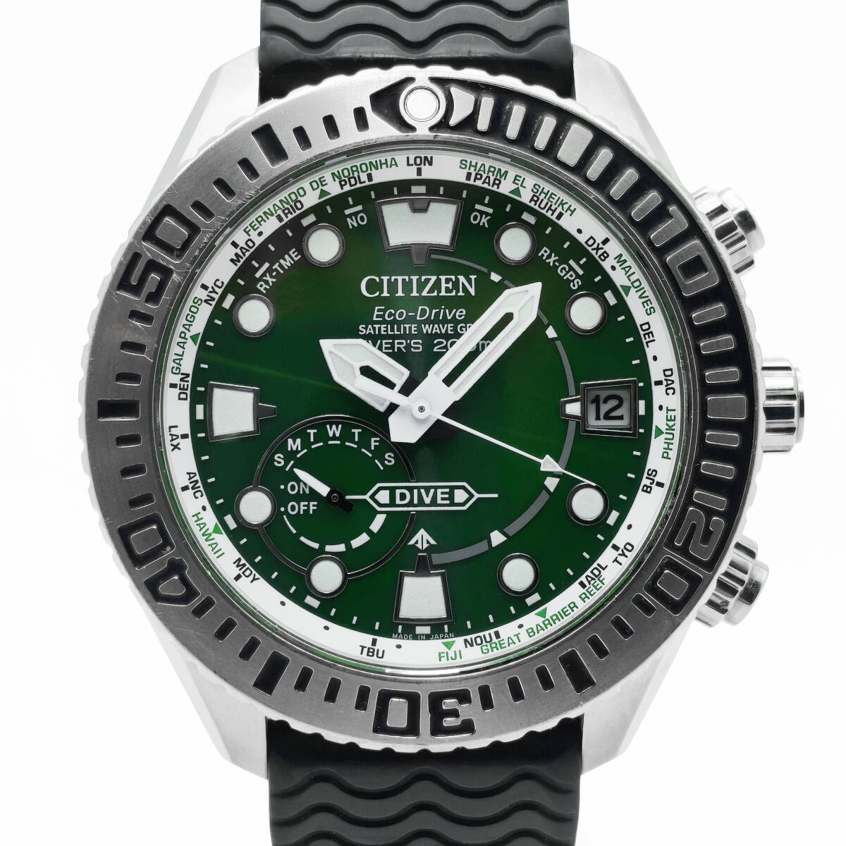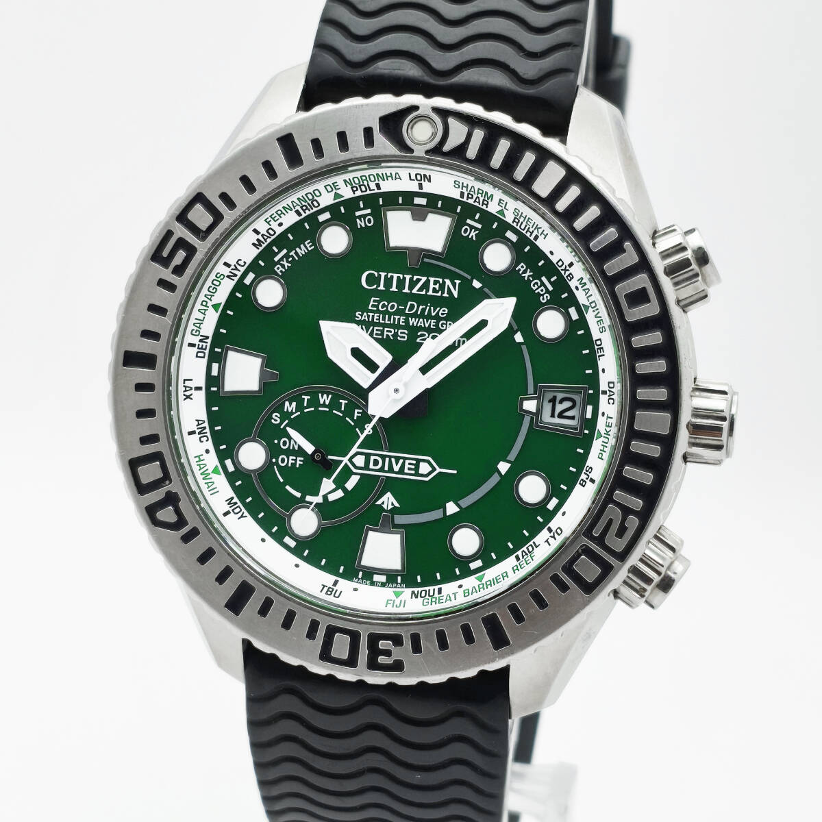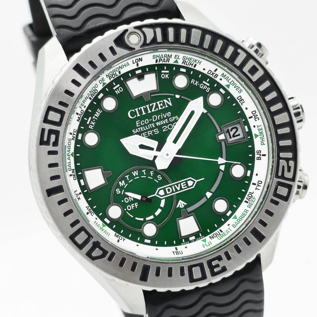美品 CITIZEN PROMASTER シチズン プロマスター MARINE マリン ダイバー200m エコ・ドライブ CC5001-00W F158-T026176 グリーン チタン