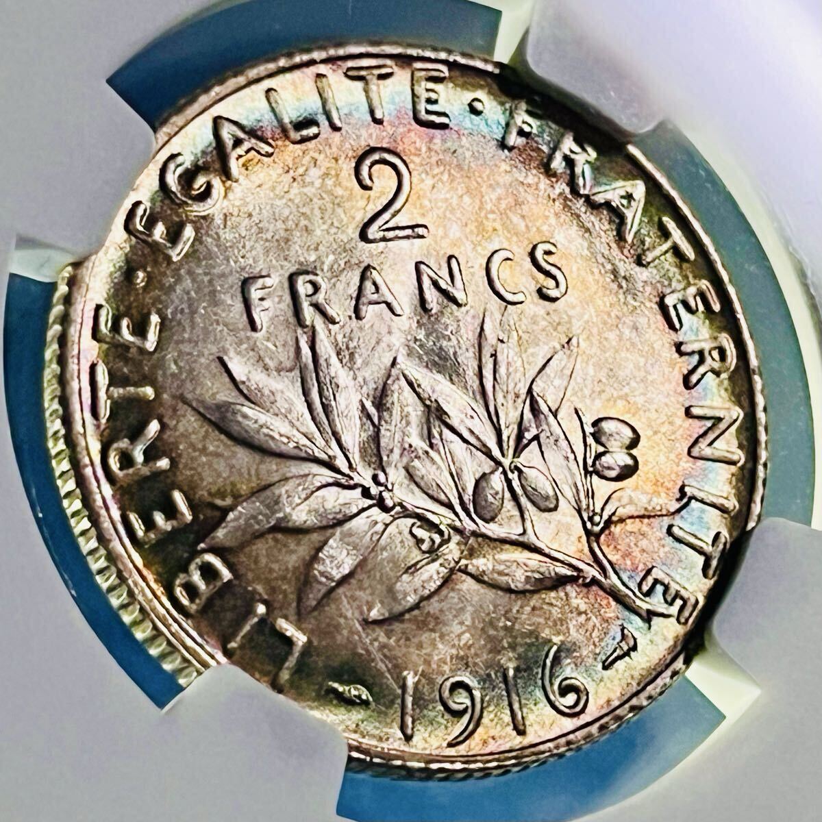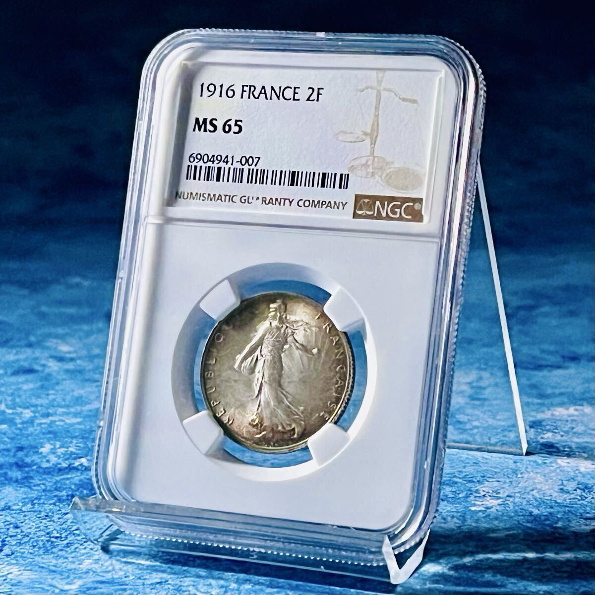 第一次大戦期1916年銘の名作「種を蒔く女 2フラン銀貨」。