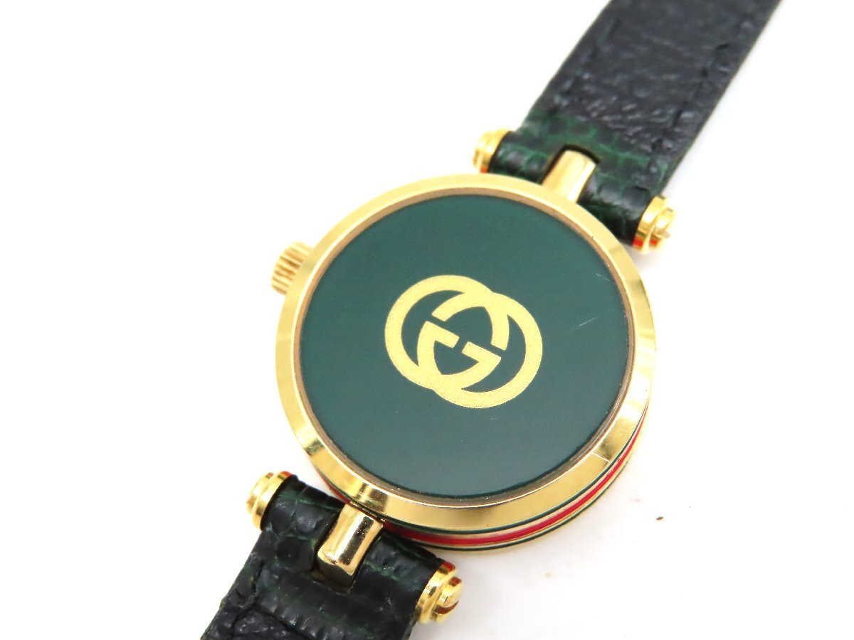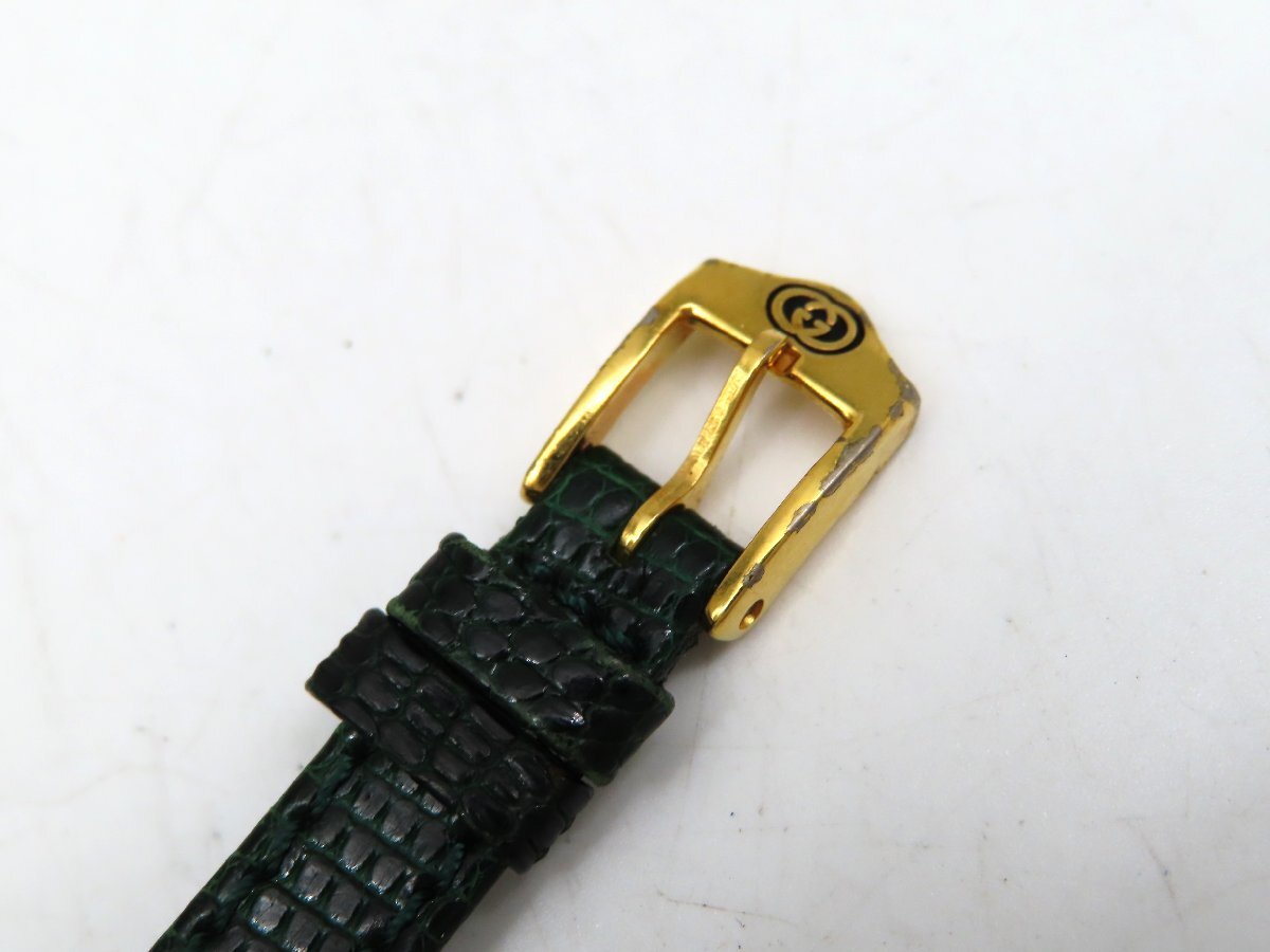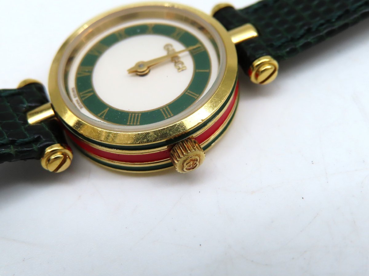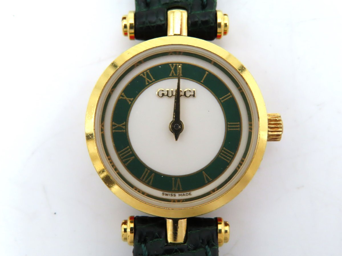1円 グッチ GP/革 ホワイト/グリーン文字盤 レディース 不動 QZ 26365 PRK