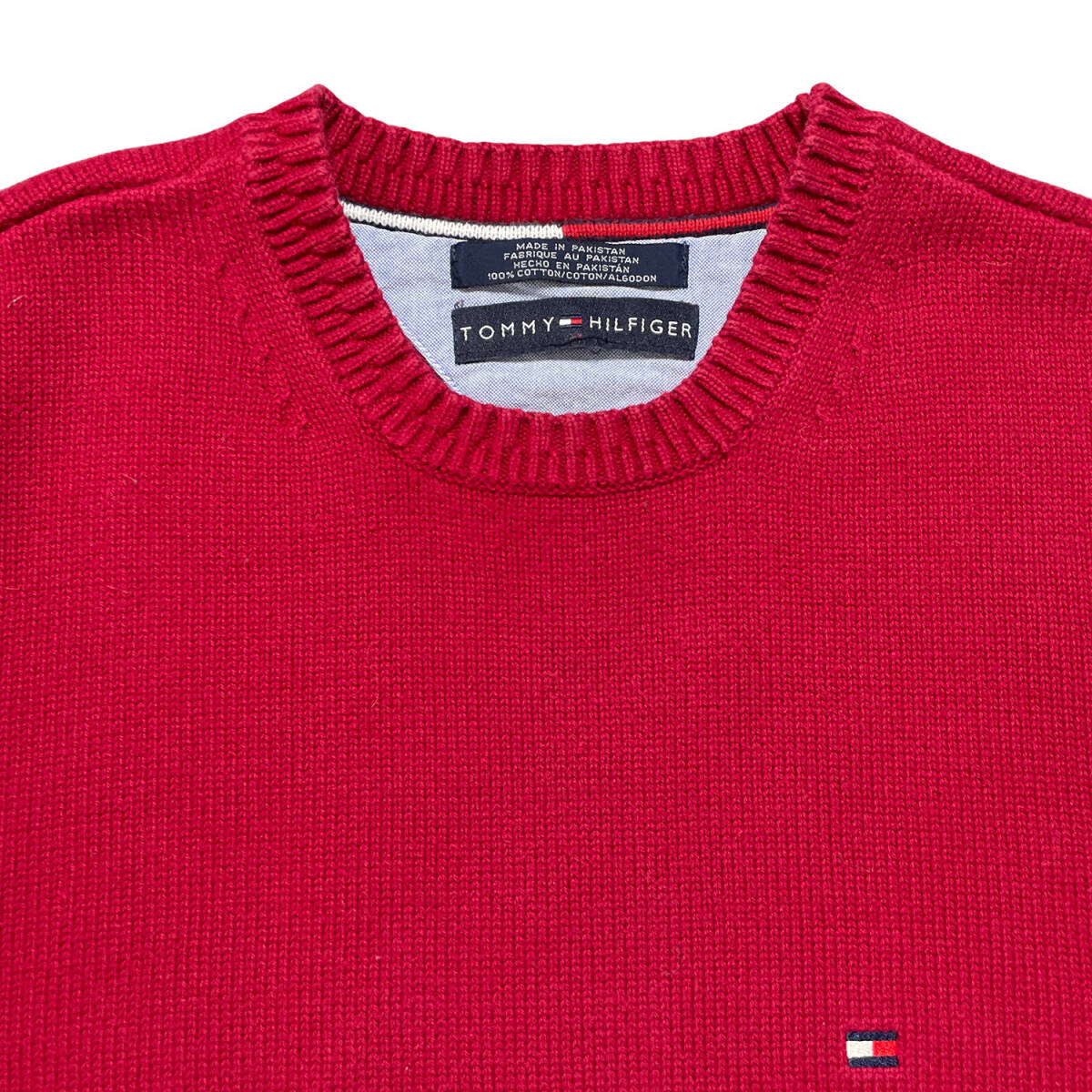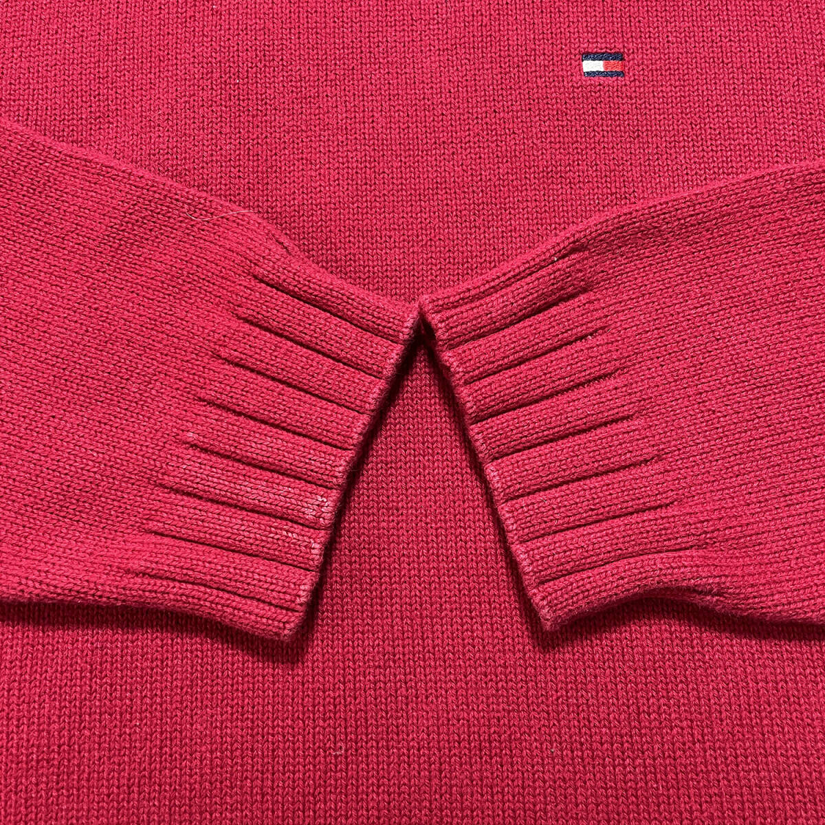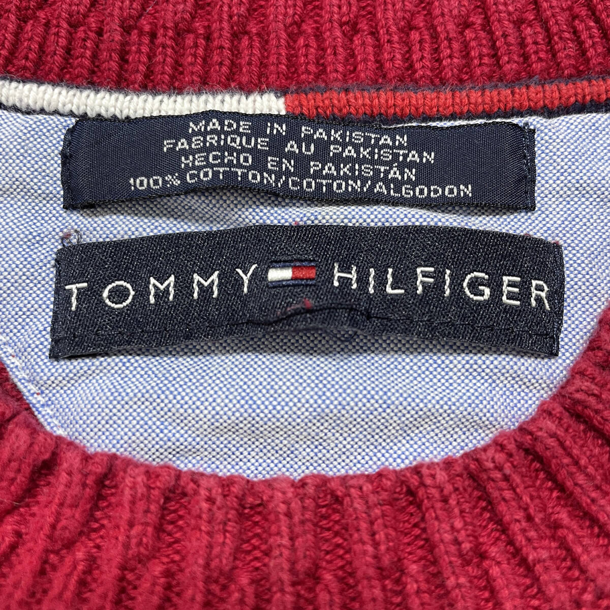 USA 古着 TOMMY HILFIGER トミーヒルフィガー コットンニット クルーネック セーター メンズL相当 レッド BJ0957