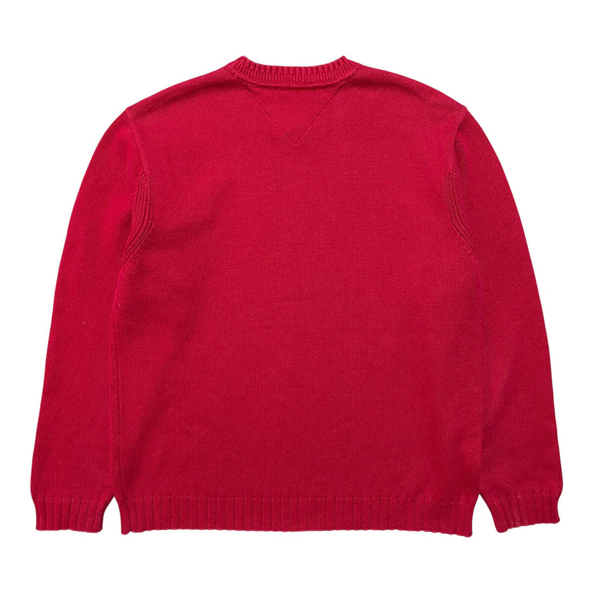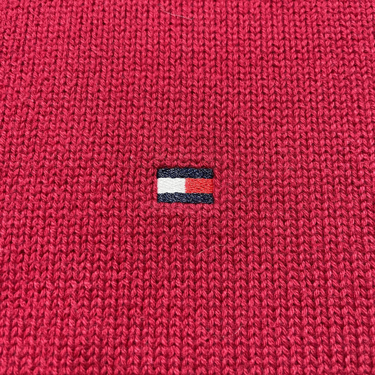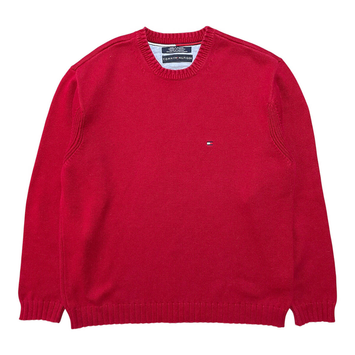 USA 古着 TOMMY HILFIGER トミーヒルフィガー コットンニット クルーネック セーター メンズL相当 レッド BJ0957