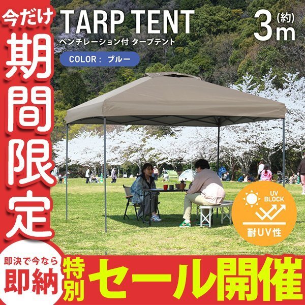 | 強い日差しでもこの3m×3mのタープテントは快適な日陰を作ってくれます! |