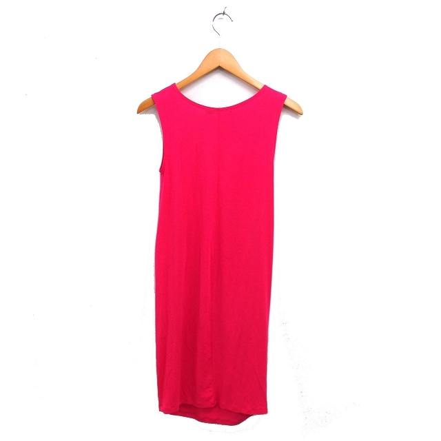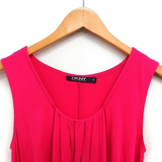 ダナキャランニューヨーク DKNY タック Uネック ワンピース ミニ タイト ノースリーブ S ショッキングピンク /NT20 レディース