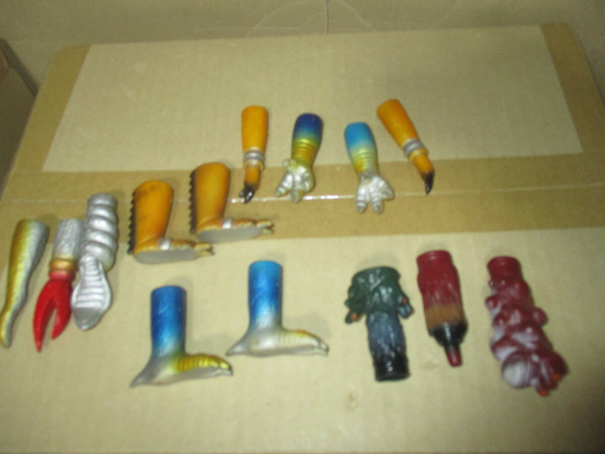 商品説明 | 当時品です。復刻品ではありません。 ドクロキングは片腕欠品です。植物怪人は頭部と胸部と片腕のみです。 組み合わせると1着になります。これらは剥げが少ない良好品です。 武器は剥げや汚れがあります。全部がキングワルダーのものではないと思いますが 生っぽいものを集めての出品です。 |