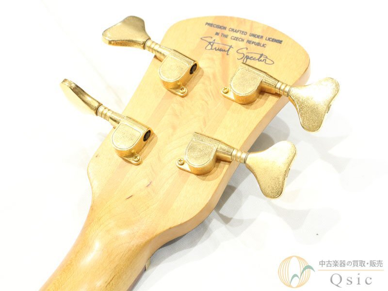 商品説明 | Spector NS-2 SSD期 創設者スチュアート・スペクターの監修のもと、チェコ共で精巧に製作されたベースが入荷。 SSD(Stuart Spector Designs)期は、Spectorブランドが再スタートを切った重要な時期にあたり、この製品にはその精神が色濃く反映されています。 独特の滑らかなカーブを描くNSシェイプのボディと、上質な材による構成は視覚的にもサウンド的にも強烈なインパクトを放ちます。 ボディおよびネックにはメイプルを贅沢に使用し、指板はローズウッド製。 ネックはスルーネック構造となっており、全体の振動伝達がスムーズで、豊かなサステインを実現します。 さらに、EMGピックアップを搭載しており、現代的で抜けの良いトーンから重厚なローエンドまで幅広い音作りが可能です。 このモデルが奏でるサウンドは、Spectorらしい タイトで芯のある低域と、煌びやかでアグレッシブな高域のバランスが魅力。 ピック弾きやスラップ奏法でも音が埋もれず、バンドサウンドの中でも存在感をしっかりと主張します。 アクティブサーキットによるコントロール性能も高く、多彩な音色を瞬時に呼び出せる操作性も特徴です。 その完成度の高さと美しいキルテッドメイプルのルックスから、ステージ映えも抜群。 ハイエンドな1本を求めるプレイヤー、そしてSpectorファンにとっても。 ぜひこの機会にご検討ください。 【Spec】 Body:Maple Neck:Maple Fingerboard:Rosewood Nut Width:41mm String Spacing:2mm Scale Length:864mm Number of Frets: 24F Pickups:EMG Controls:1Vol,Balancer,2BANDEQ 【状態】 ボディサイドに打痕が見受けられます。 フレット残り:6割程度 トラスロッド:余裕あり 電気系統:問題なし 重量: kg ネック:問題なし 交換パーツ: 欠品: 【調整内容】 全体クリーニング ネック調整 弦高調整 オクターブ調整 電装系クリーニング フレットすり合わせ 配線修理 「万が一、気に入らなければ返品OK!」で大変ご好評をいただいております、 通信販売における最大のご不安を払拭した『納得購入サポート™』ですが、 ヤフオク!におきましては、2020年2月1日よりサービスの提供を終了いたしました。 詳しくは、ヤフオク!でのサービス終了のお知らせ をご覧ください。 ヤフオク!でのご落札品は、当サービスの提供対象外でございます。 |