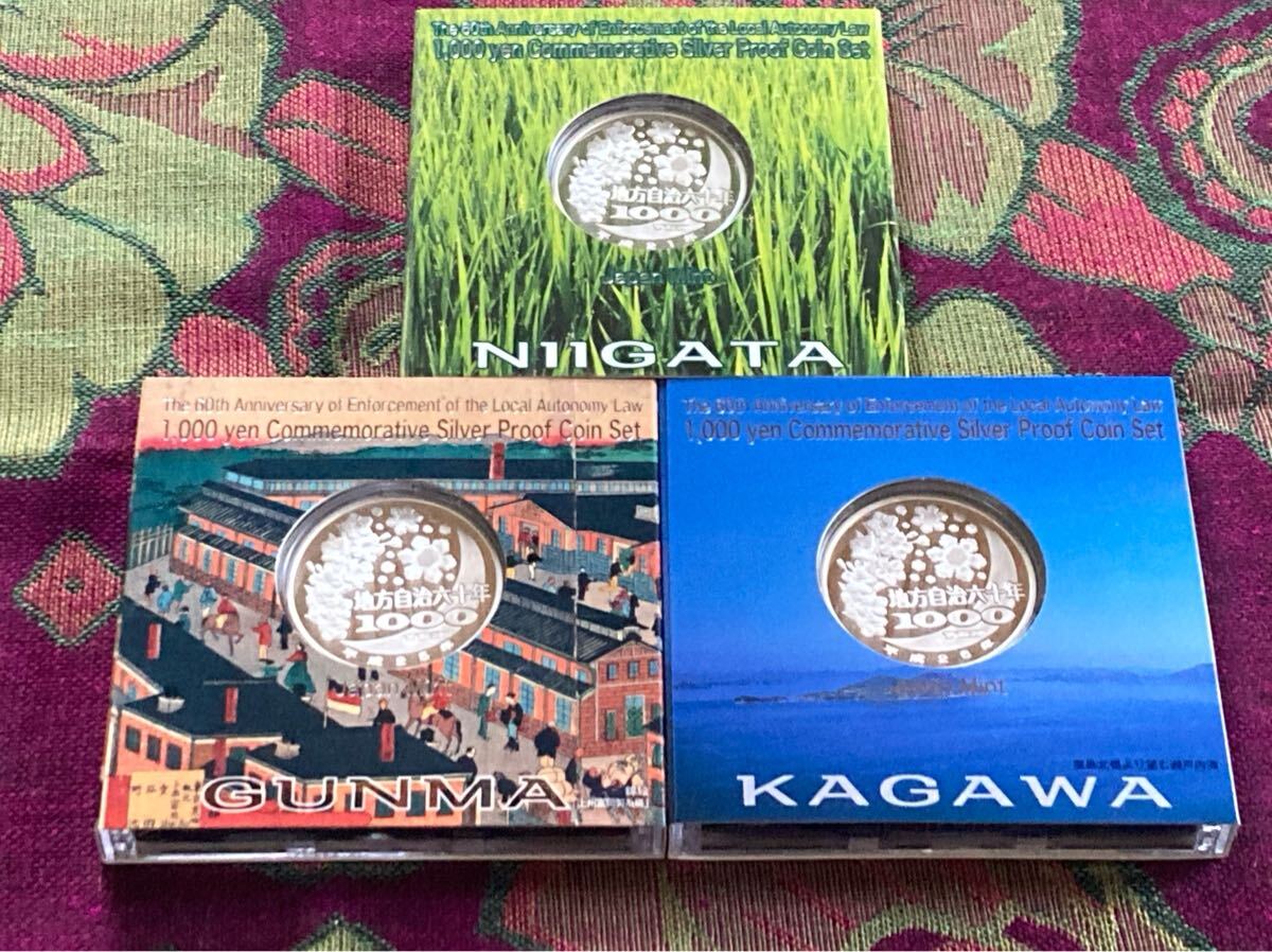 地方自治法施行60周年記念貨幣 新潟県、群馬県、香川県Aセット1,000円銀貨 各1枚計3枚です。