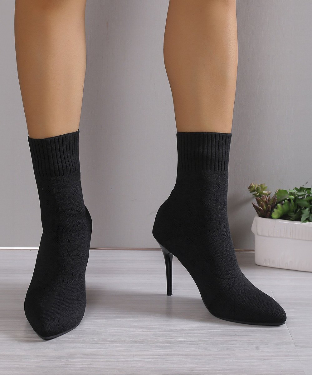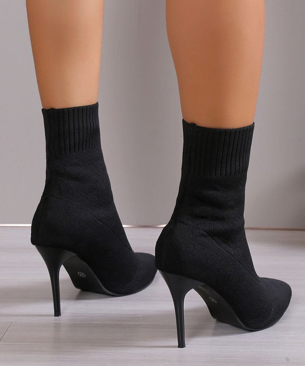 レディース ニットブーツ ポインテッドトゥ 9cmピンヒール シューズ 無地シンプル セクシー オフィス きれいめ 靴