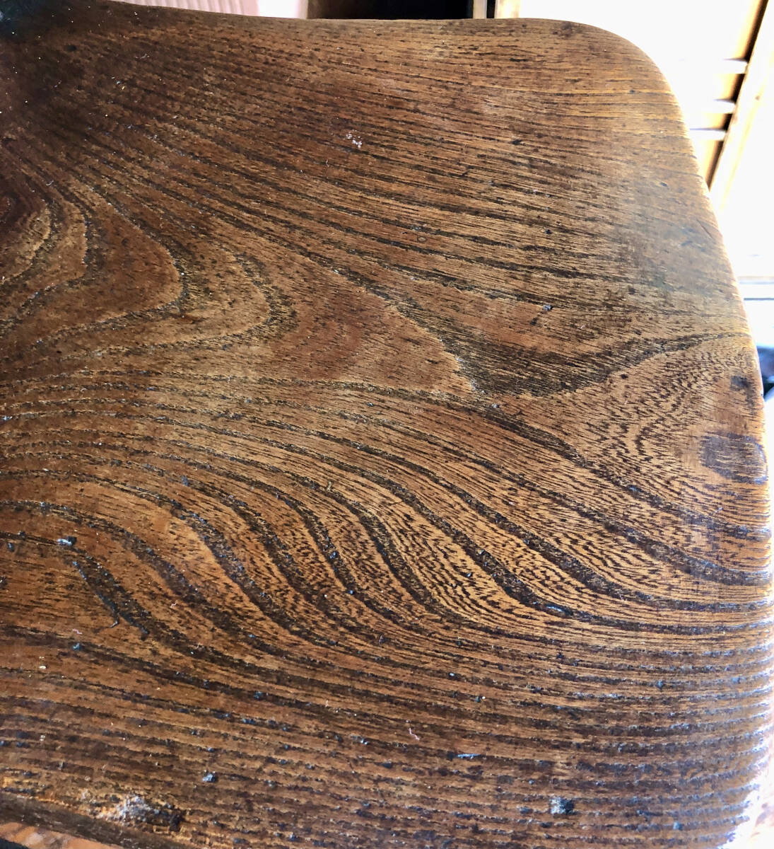 英国では、船の製造に用いられるハードウッドの楡の木を使った1枚板をお尻の形に掘り上げた座りの良いダイニングチェアーです。