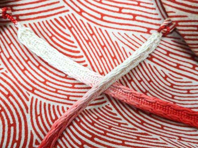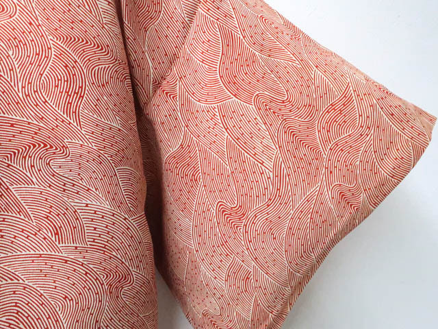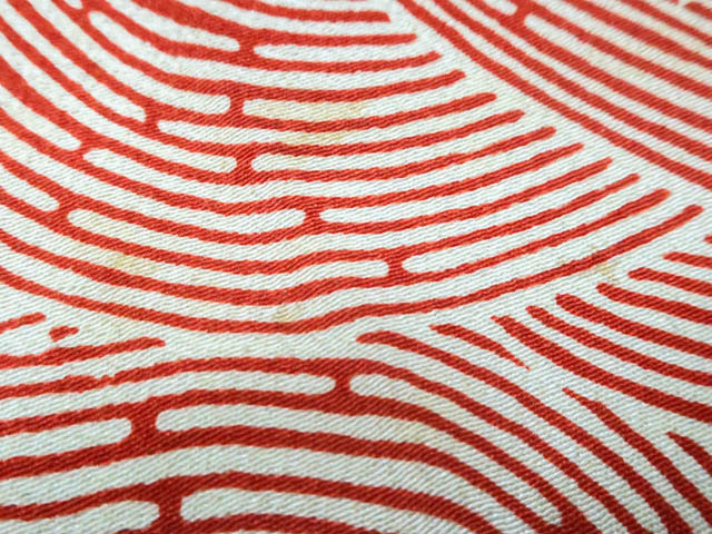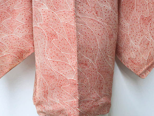 リサイクル商品のため所々しみと羽裏に記名がございますが着用可能なお品です。 地色は赤・アイボリー です。 1枚目の画像が近いお色かと思われます。 素材は正絹です。 |