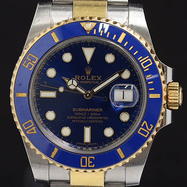 1円 稼働 ロレックス サブマリーナ デイト コンビ YG×SS 116613 Q6934676 AT/自動巻 ブルー文字盤 メンズ腕時計 0188771 8DIT ABC SMZ