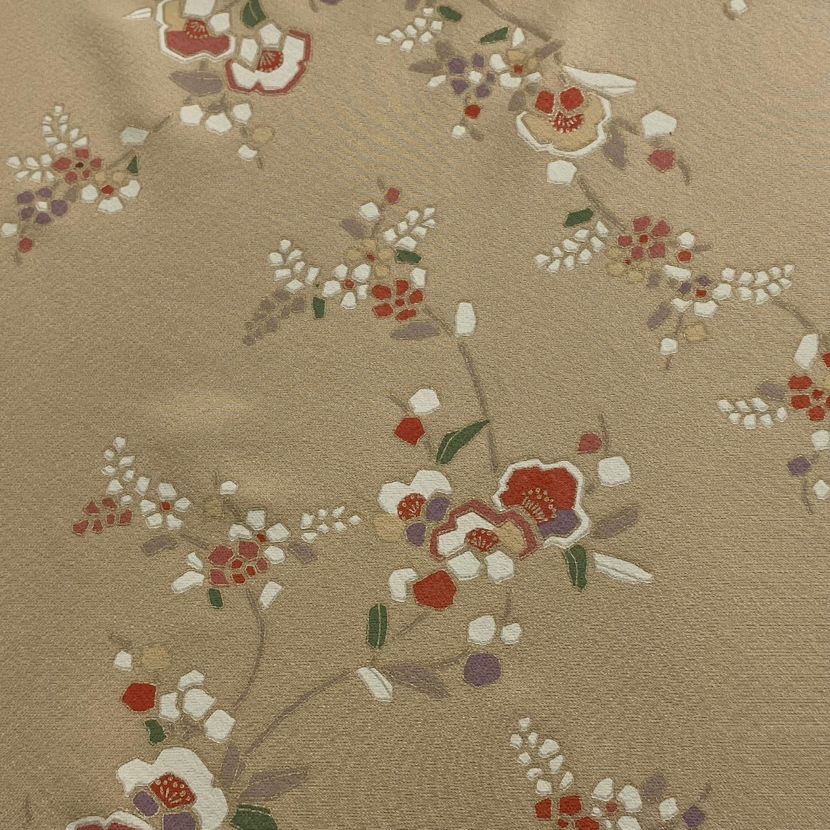 | 反物 秀品 小紋 伊と幸 枝花 金彩 薄茶色 正絹 【中古】 |
