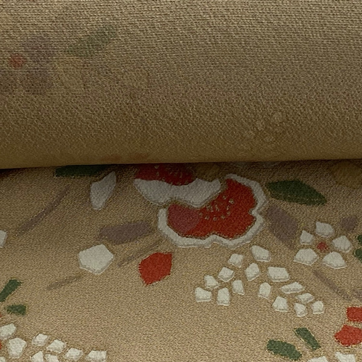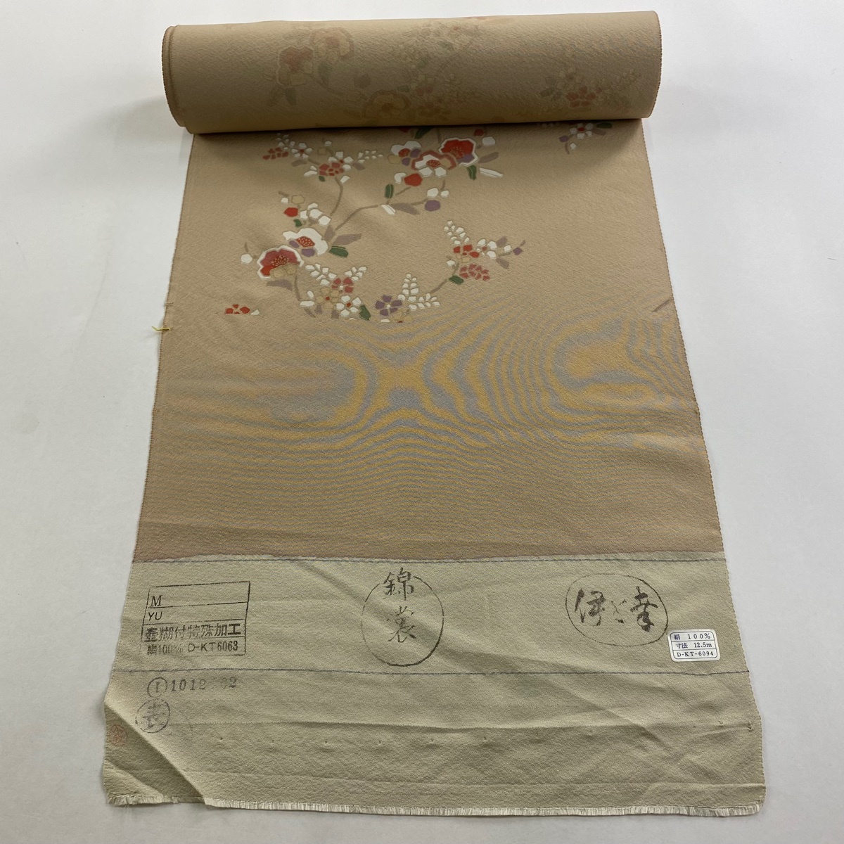 | 反物 秀品 小紋 伊と幸 枝花 金彩 薄茶色 正絹 【中古】 |