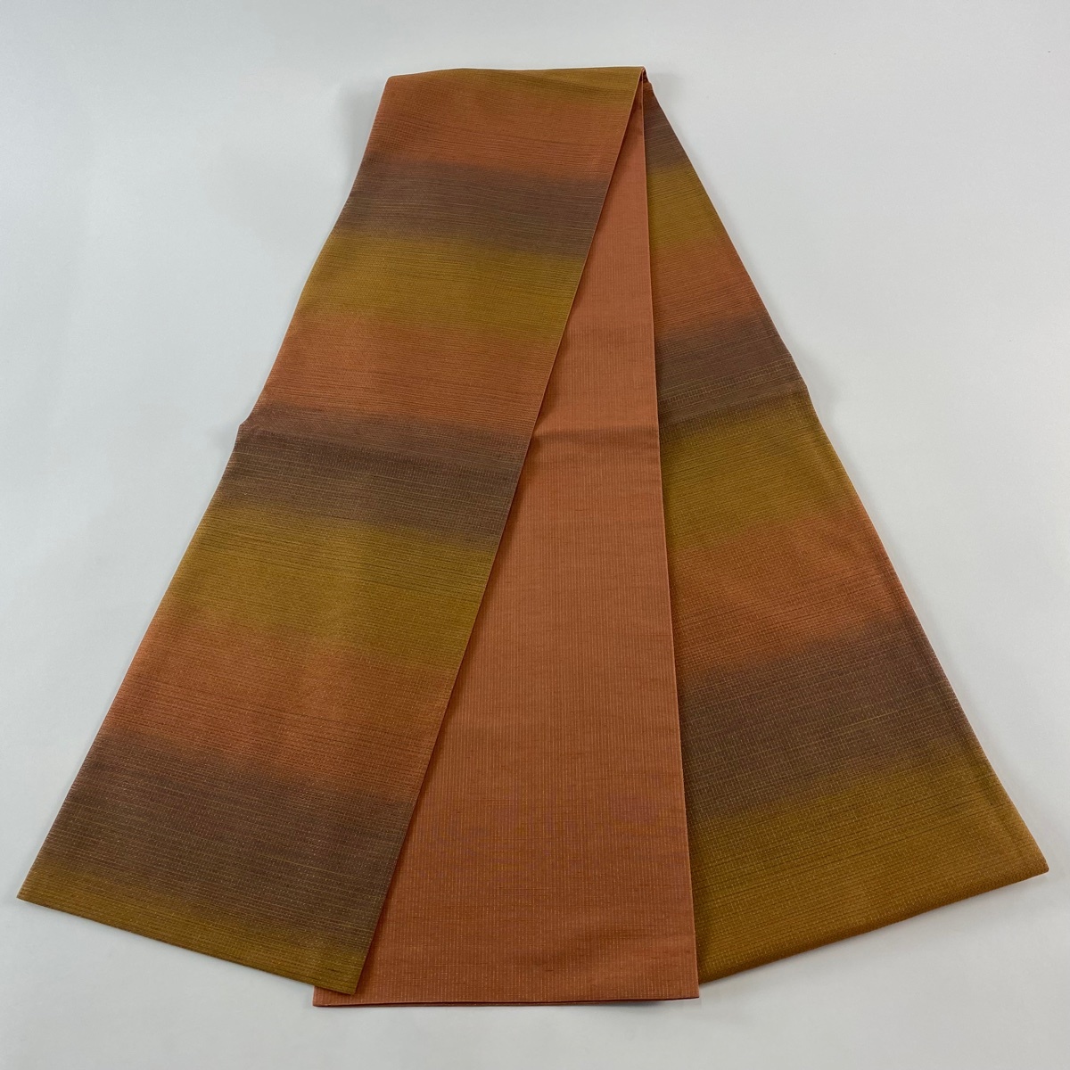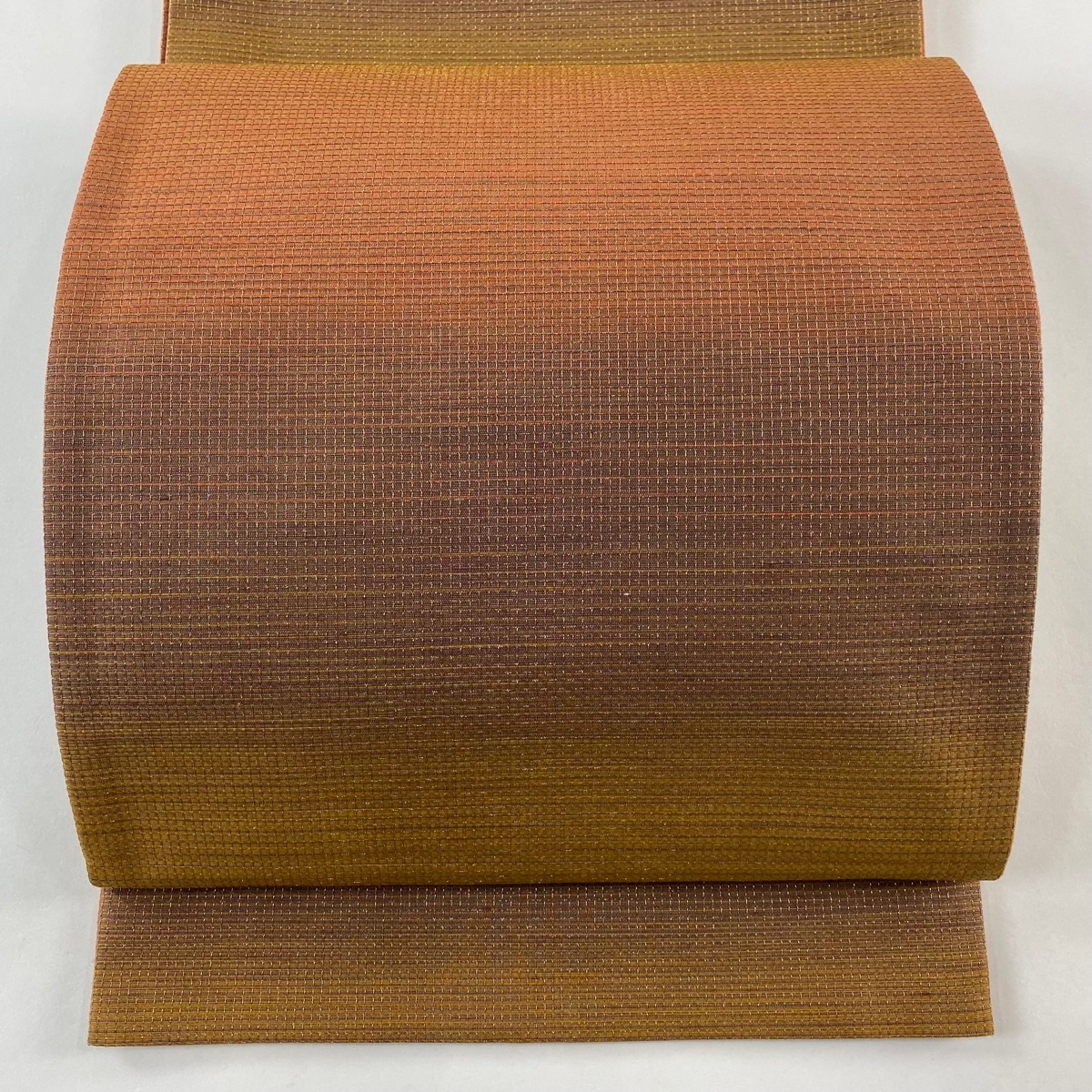 | 袋帯 美品 秀品 段縞 金糸 オレンジ 全通 正絹 【中古】 |