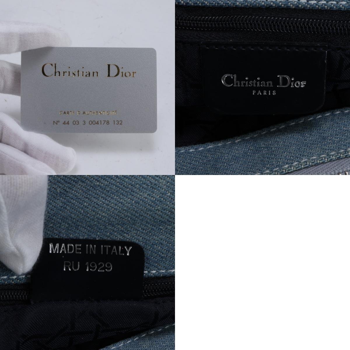 1円■ディオール ギャランティカード カナージュ レディディオール デニム 2WAY トート バッグ 斜め掛け ショルダー レディース RRE BR3-1