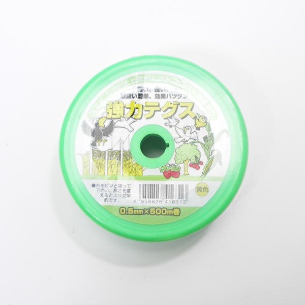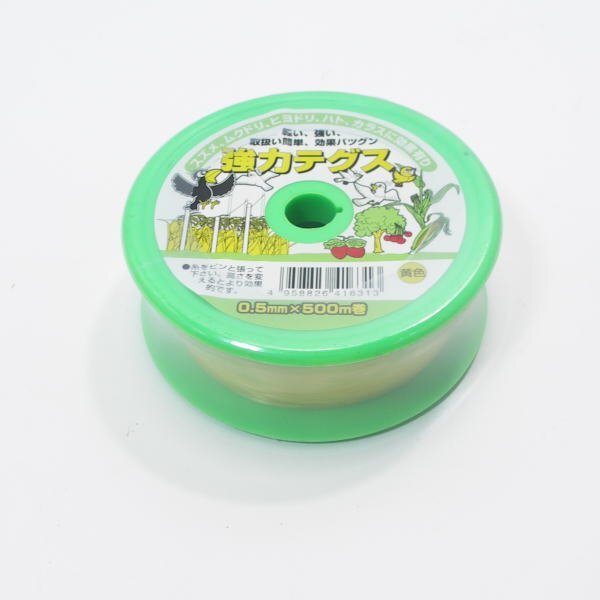 【未使用】強力テグス 防鳥糸 0.5x500m 黄色 パッケージ破損穴あり 色あせあり