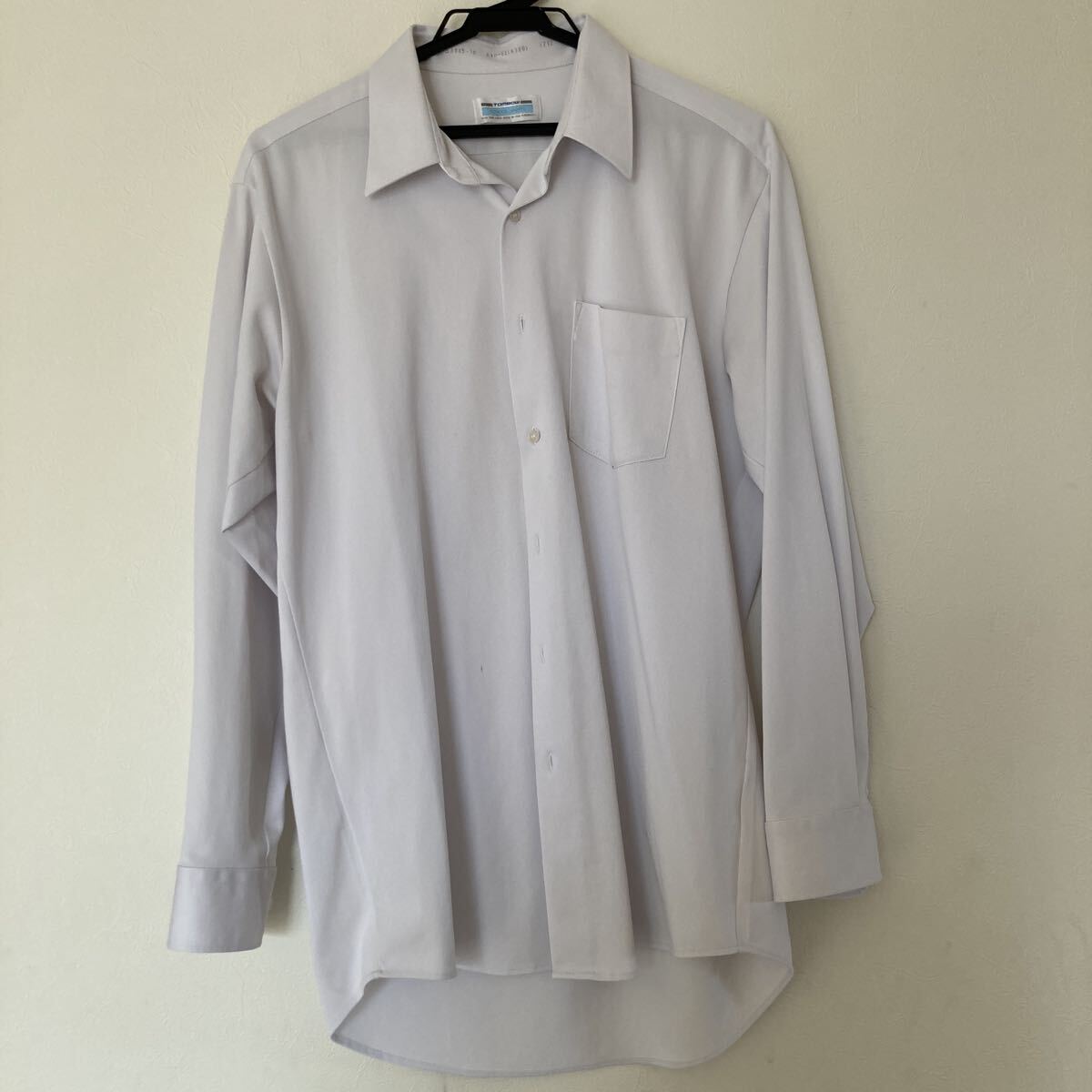 トンボ学生服のワイシャツA40-82 A180男子高校生が着用していました。ストレッチのある生地です。ポケット先に点のペンのあと、右ベルト辺りに3ミリほどの汚れがありますがまだお使いいただけると思います。