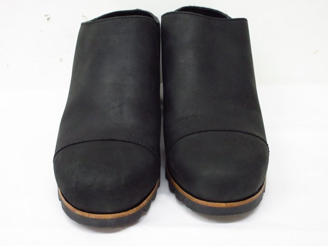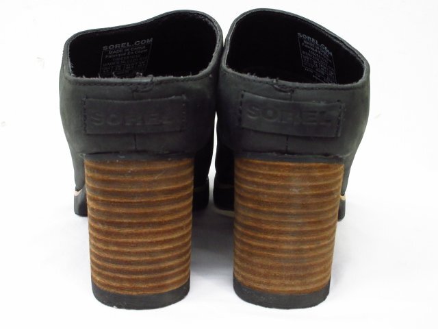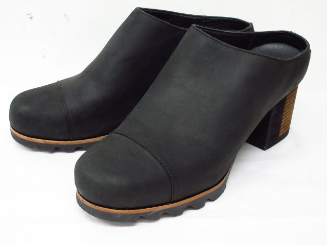 a9198 SOREL ウッド調ヒール シンプル ミュール 黒 ブラック サイズ26.5㎝ ヒールの高さ 約7㎝