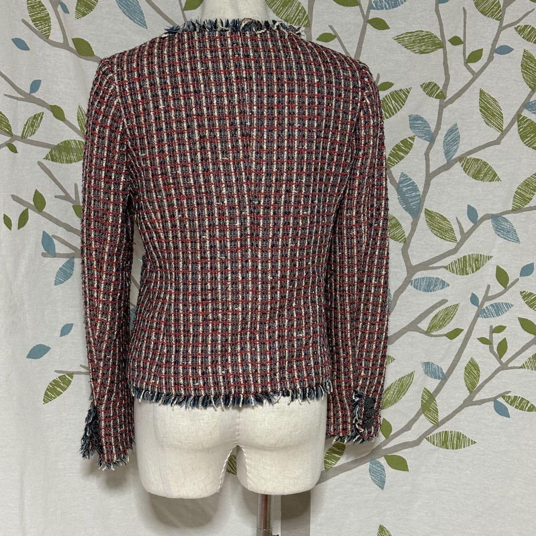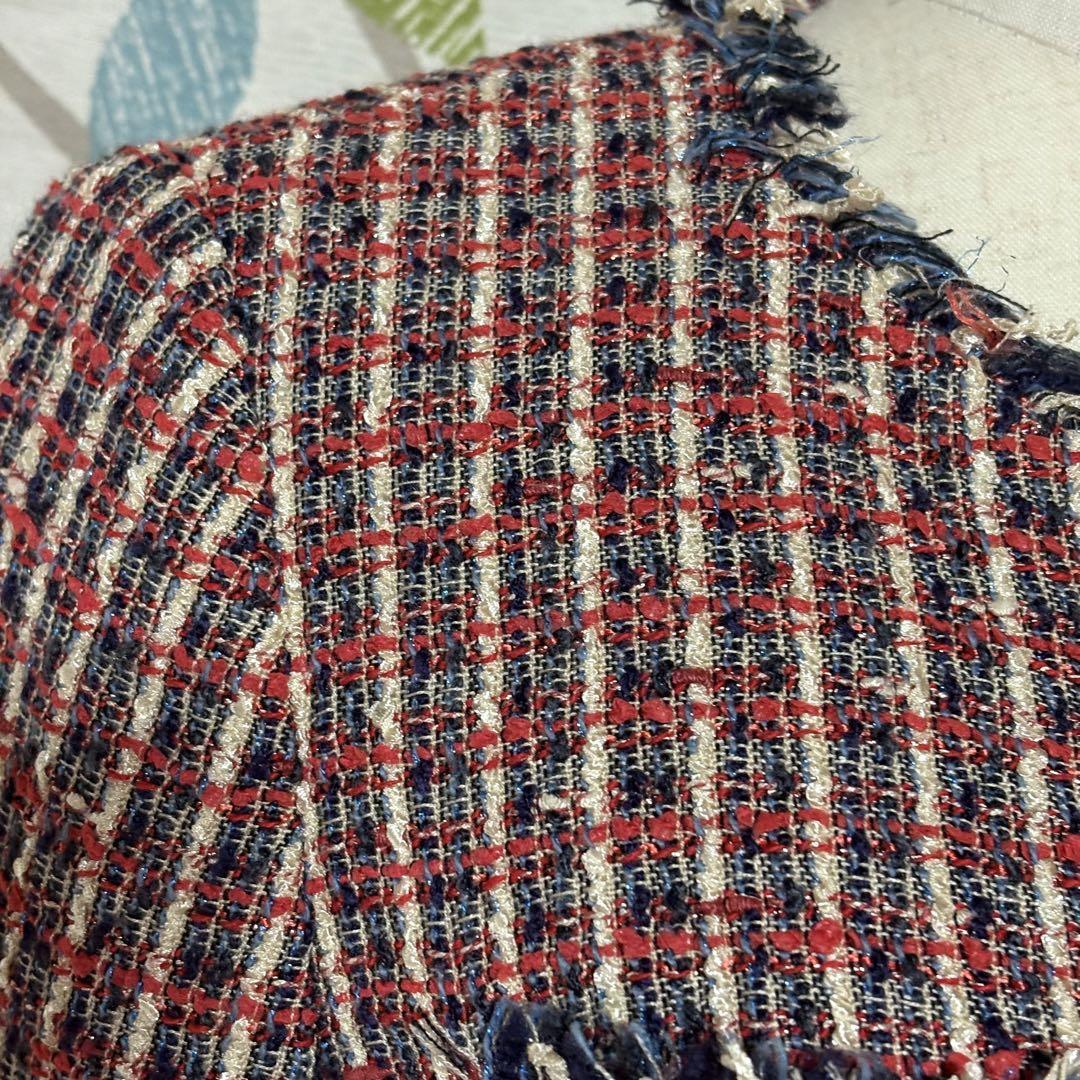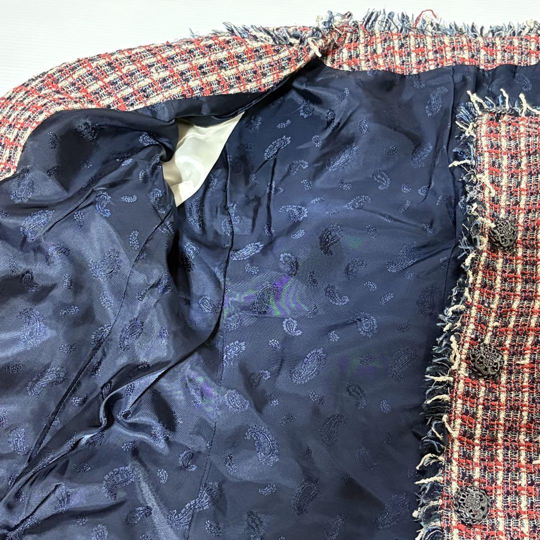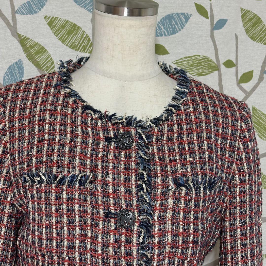 赤、ネイビー、白のツイード素材の鮮やかなジャケットになります
