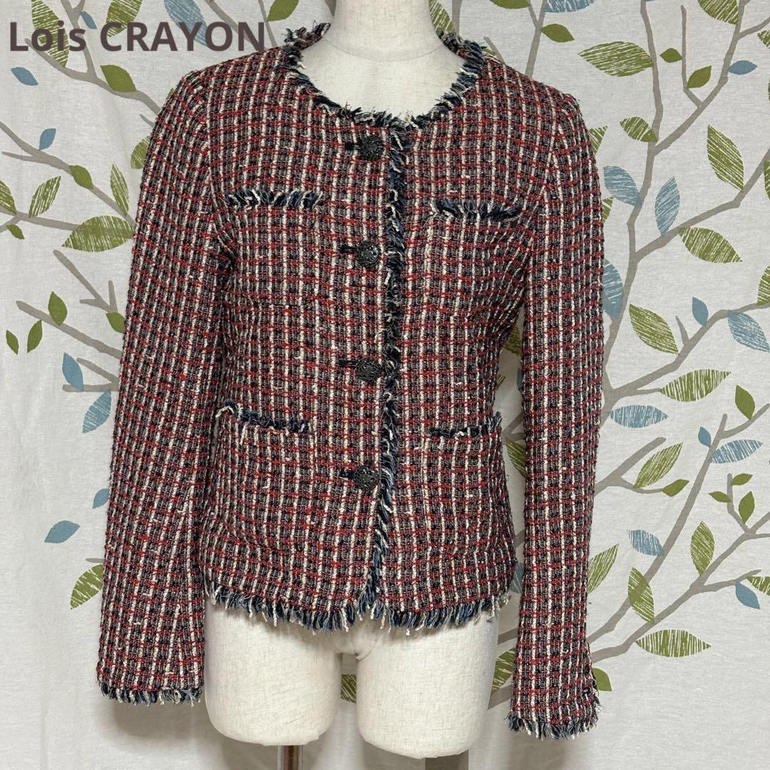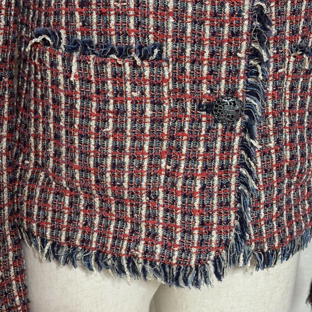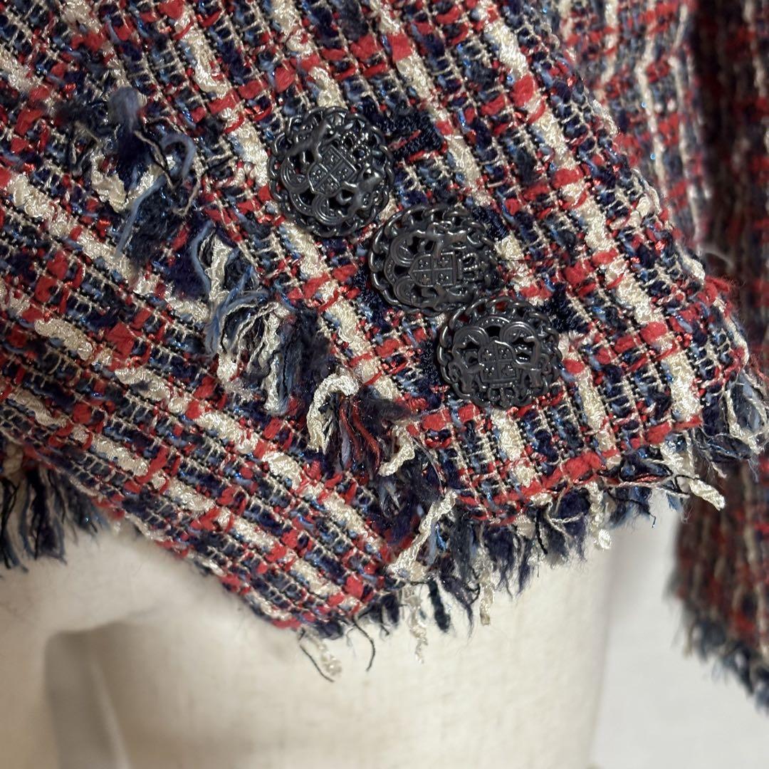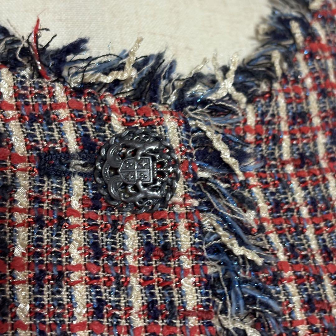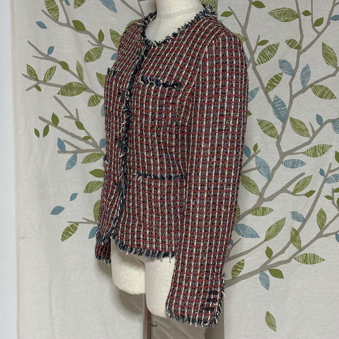 赤、ネイビー、白のツイード素材の鮮やかなジャケットになります
