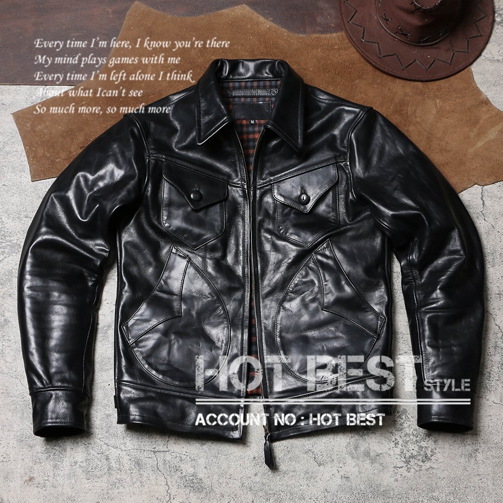 1.2mm 黒芯ホースハイド 復刻40's アビエイタースタイル レザージャケット メンズ 革ジャン 植物鞣し オイルワックスレザー 馬革 Y1584/XL