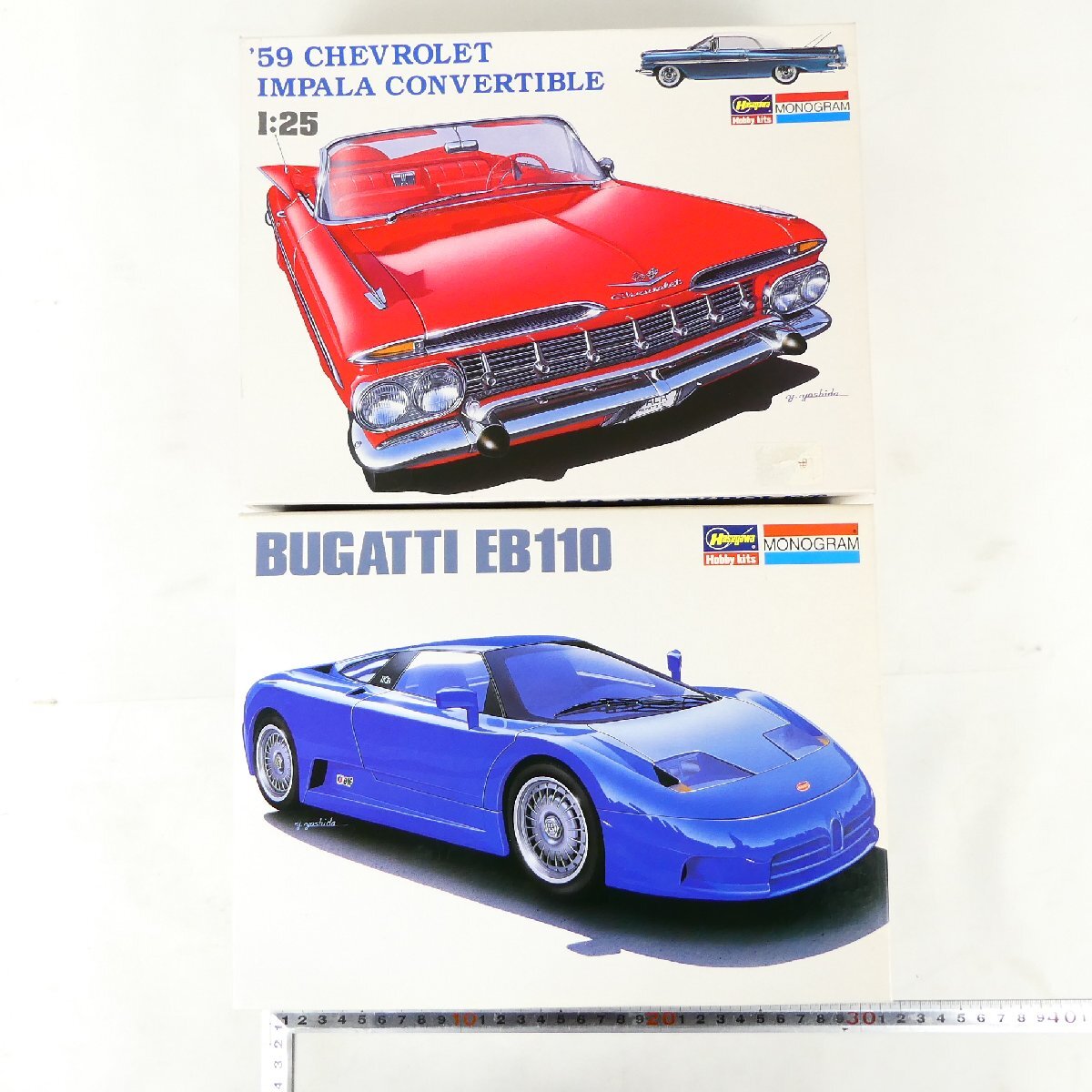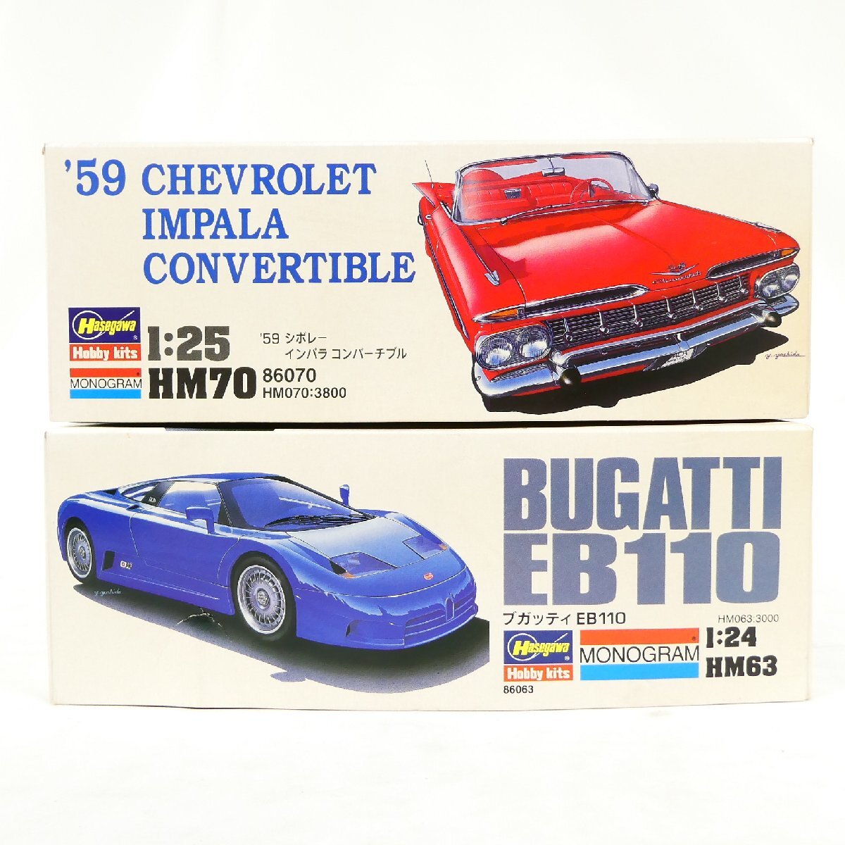未組立 プラモデル 2点セット ハセガワ MONOGRAM '59 シボレー インパラ コンバーチブル ブガッティ EB110 コレクション品■PF033s■ |