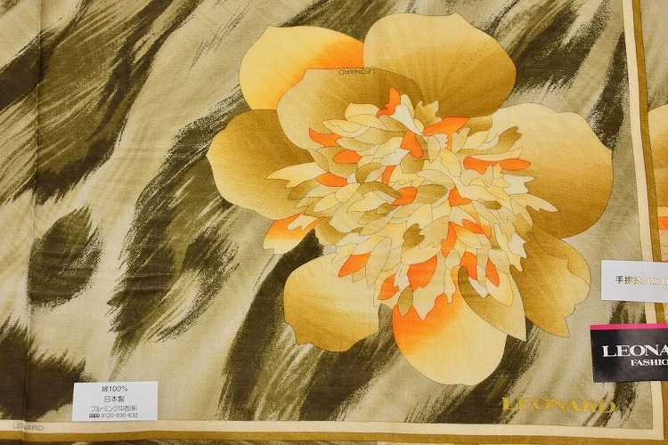商品説明 | 世界で最も美しいプリントとされるレオナール。 ハンカチとしてはもちろん、首まわりのオシャレにもお使い頂けます。 サイズ:約 52×52 cm 色:カーキ × ライトベージュ 日本製 ◆メール便 OK ※箱無し商品のため、お箱のご用意はございません。 |
