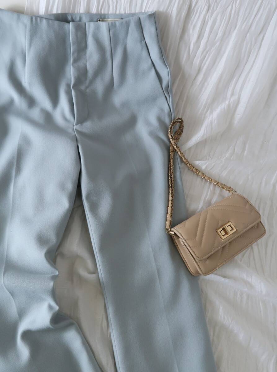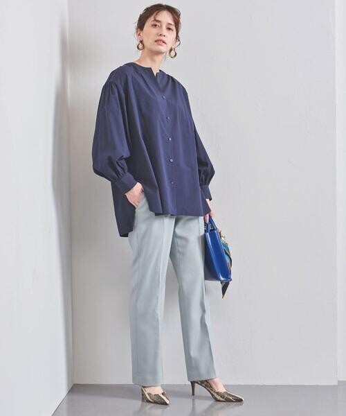 ポリエステルウールの混紡糸を使用した立体的な表情のある組織は、秋から長期間着用いただける素材感も魅力です。全体的に細めで裾に向けて若干広がるブーツカットシルエット。