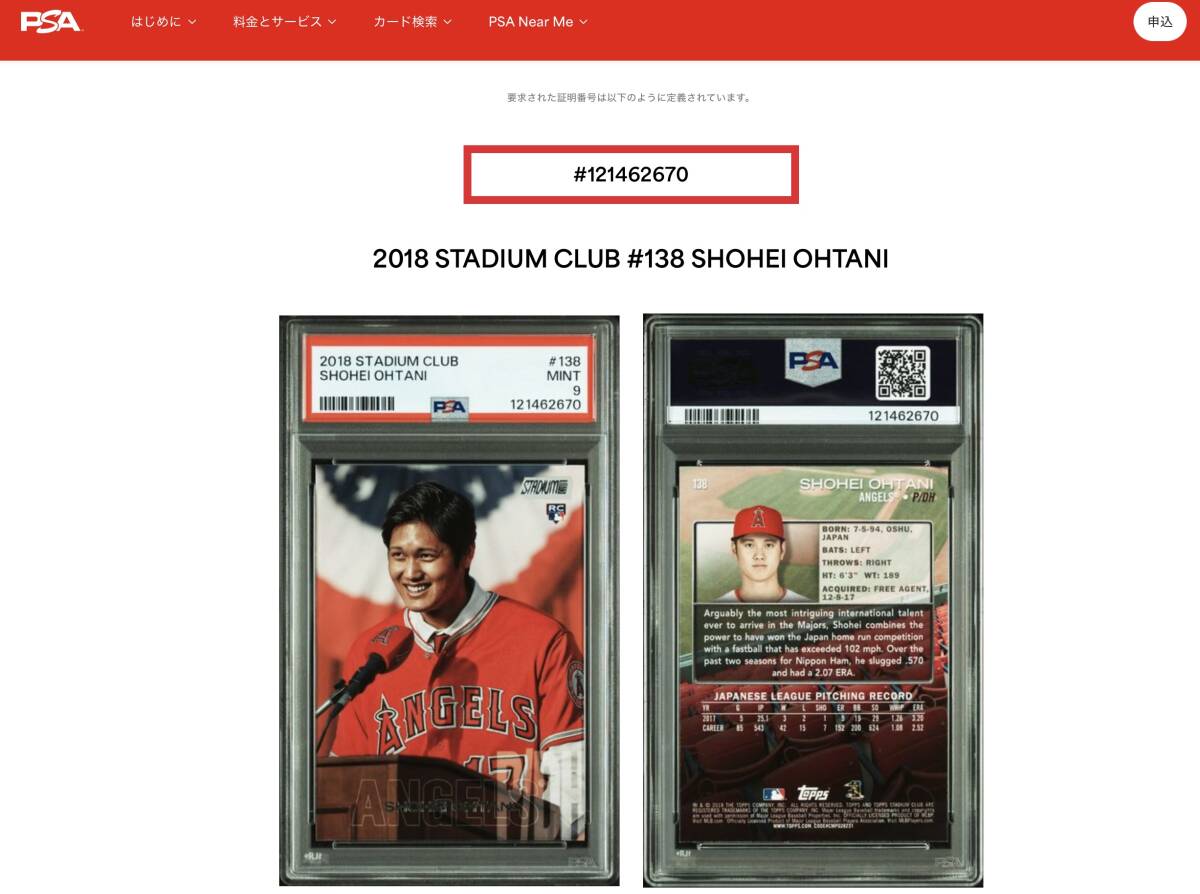 最後の掲載写真は、PSA鑑定サイトに鑑定番号を入力すると確認する事ができる真贋証明済画像です。