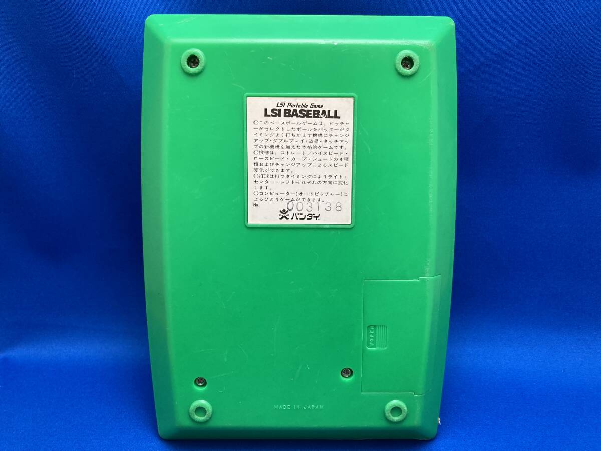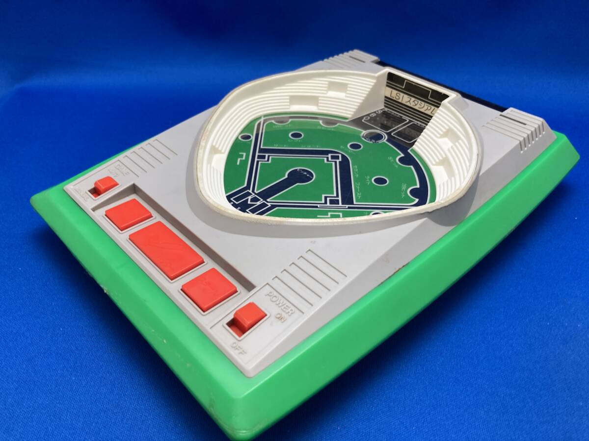 バンダイのLSIゲーム「LSIベースボール」です。 清掃メンテ済み・動作品です。 動作状況は下記GIF画像をご覧ください。 [プレイ時のGIF画像1枚有] 約20秒間繰り返し表示 表示されない場合は、コチラをクリックしても確認頂けるようにしています 箱・説明書はありません。本体のみとなります。 画像では伝わりませんが、音も現在正常に出ています。 電池:9V電池×1必要(電池はお付けしていません) 電池蓋あり・正規の物です コンピューター(オートピッチャー)による一人用の他 マニュアル設定でピッチャーとバッターに分かれて対戦も可能です。 守備側は球種を選んで投げる事ができます。 攻撃側はヒット後、ルーレットによるランダムで結果が決まります。 どうぞよろしくお願いいたします。 |