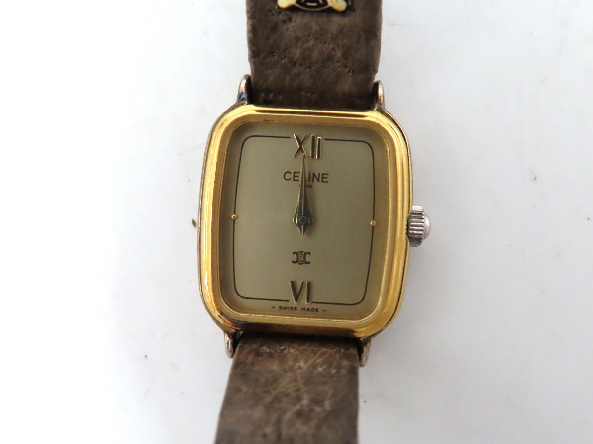 1円 セリーヌ 8311 GP/革 シャンパン文字盤 レディース 不動 QZ 2638102 KRH