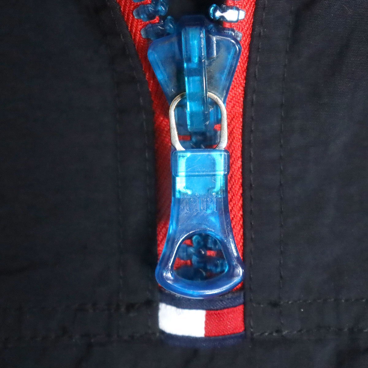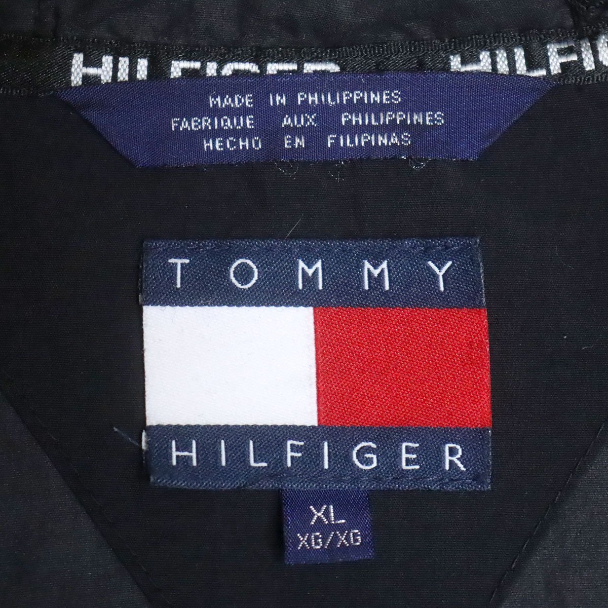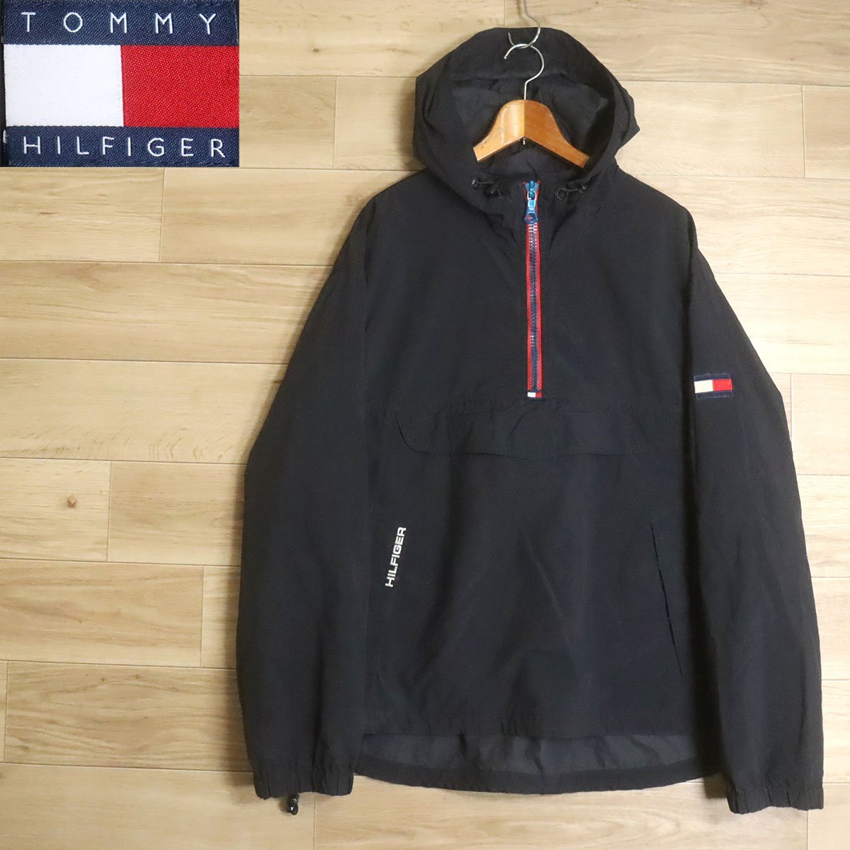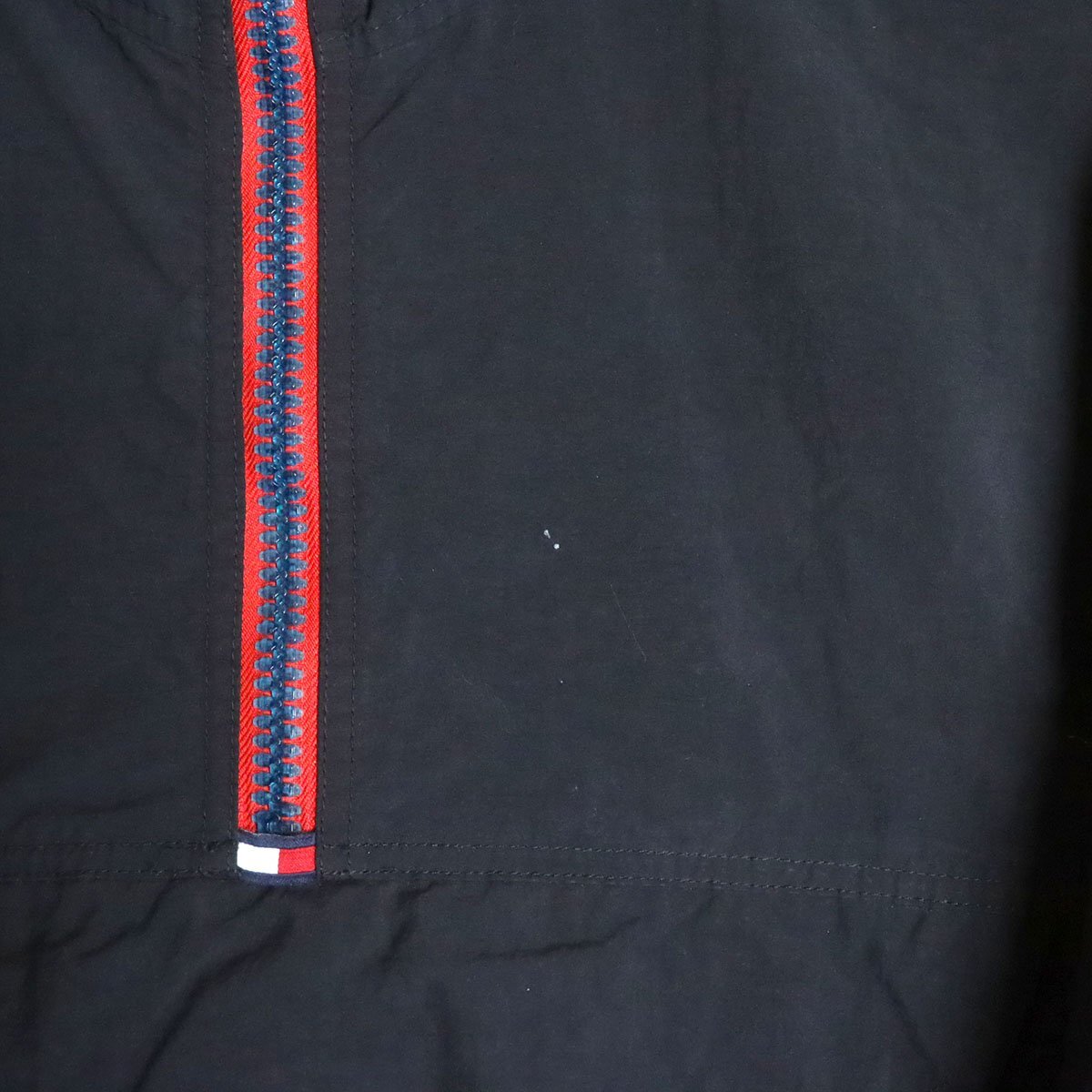@9R/R4.1-2 TOMMY HILFIGER トミーヒルフィガー ナイロンアノラックパーカー ハーフジップ プルオーバー XL メンズ ブラック