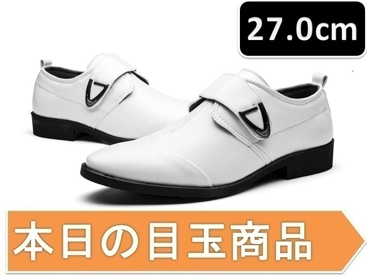 本日の目玉 ☆ メンズ ビジネス レザー シューズ ホワイト サイズ 27.0cm 革靴 靴 カジュアル 屈曲性 通勤 軽量 【207】